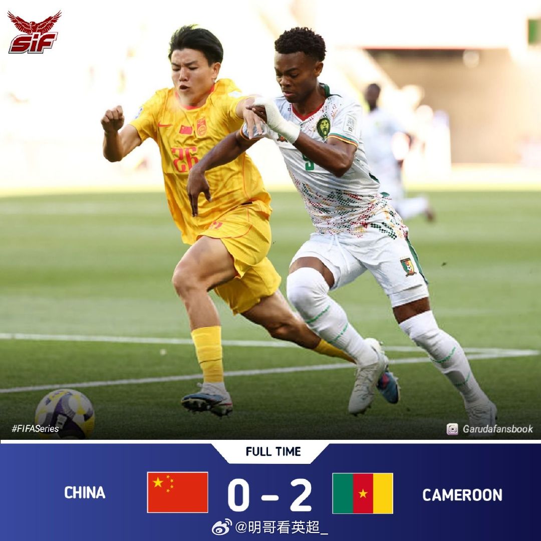 全场比赛结束!国足0比2不敌喀麦隆!这是邵指导带领中国男足的第二场比赛,同时也是第一场首败!