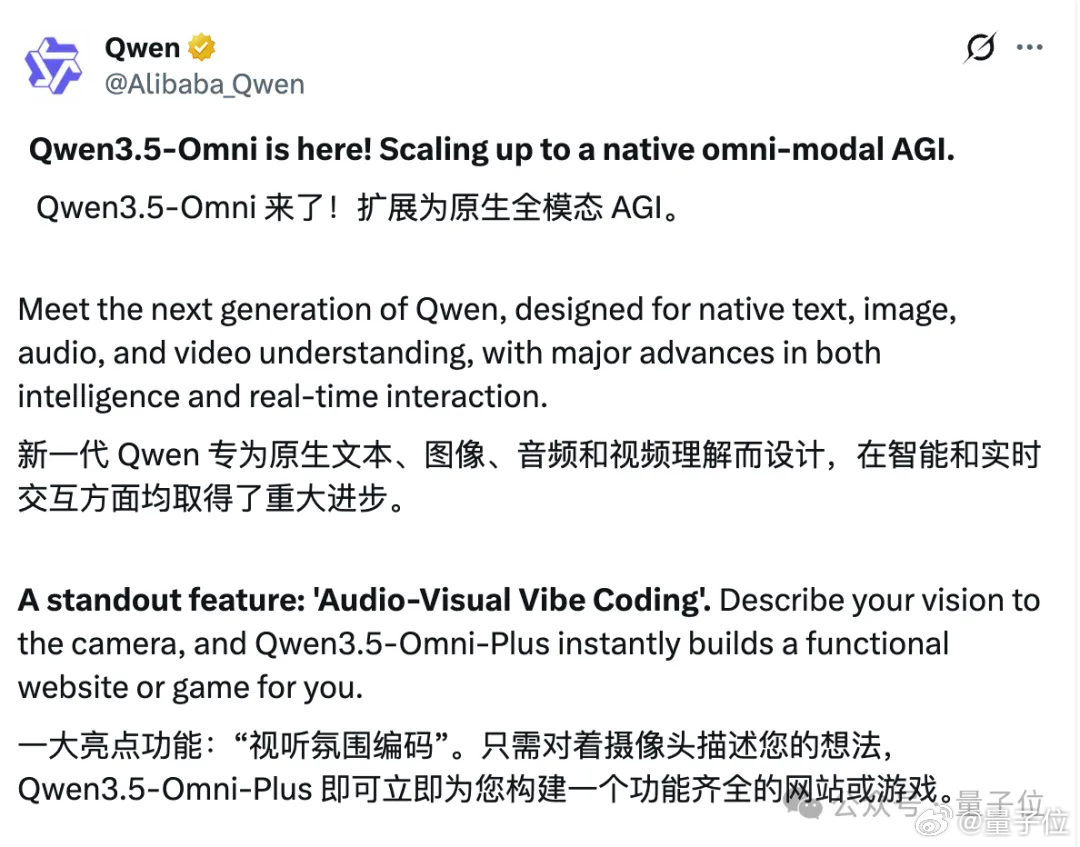Qwen3.5-Omni来了!
