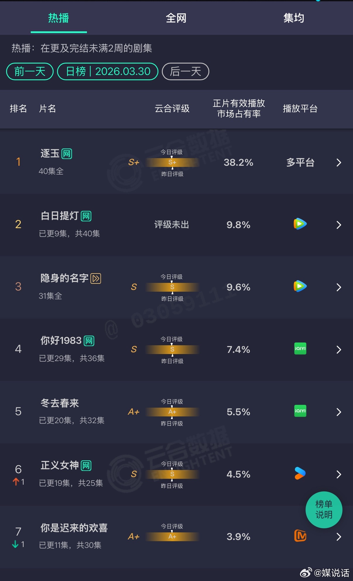 迪丽热巴 陈飞宇《白日提灯》高开平走?第三天云合已经开始放缓,从9.3%微增到9.8%,算爆剧吗?