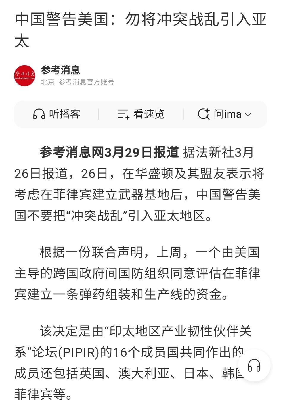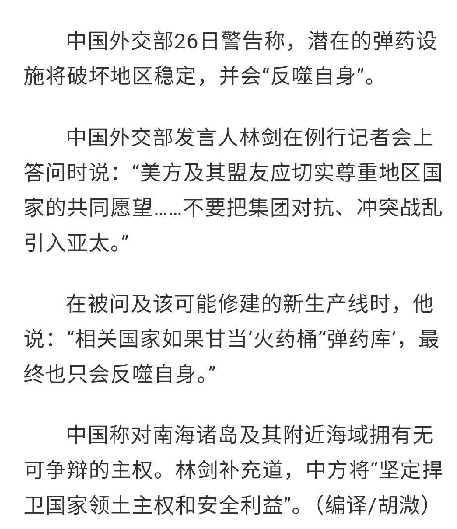别把亚太变成下一个火药桶!美国这波操作,真的太不地道了 这两天有个事儿真是令人越想越气,美国带着一帮盟友,居然打算在菲律宾建弹药生产线,这明摆着是想把冲突和战乱往亚太引啊,咱中国外交部的警告,真的说到了点子上! 说直白点,美国这波操作根本不是啥所谓的“产业合作”,就是打着联盟的幌子,把军工补给的摊子直接铺到亚太家门口。拉着英国、澳大利亚、日本等16个国家搞所谓的印太产业韧性伙伴关系,说到底无非就是想抱团,把菲律宾打造成他们在亚太的“弹药库”,让区域内的军事对抗氛围越来越浓。 咱平心而论,菲律宾图啥呢?短期可能能捞点合作的好处,但长远来看,甘当别人的“火药桶”,真的是捡了芝麻丢了西瓜。一旦真的把弹药生产线建起来,相当于把自己架在了风口浪尖,真要是区域内有啥摩擦,首当其冲受影响的肯定是菲律宾本土,最后反噬自身,后悔都来不及。 亚太地区这些年能安安稳稳发展,靠的从来不是堆军火、搞结盟,而是所有国家都盼着和平,一起搞发展。周边国家谁不想过安稳日子?谁愿意看着家门口变成战场?美国倒好,自己隔着太平洋,却非要把集团对抗那一套搬到亚太,完全无视地区国家的共同心愿,这做法真的太自私了。 咱们一直都守着自己的底线,南海诸岛的主权,拥有无可争辩的权利,捍卫国家领土和安全利益,这点从来不含糊。同时咱也真心希望亚太能一直和平稳定,所以才明确警告美方及其盟友,别把冲突战乱引过来,别做破坏地区稳定的事。 说到底,亚太不是美国的博弈场,更不是谁的后花园。那些跟着美国瞎掺和的国家,可得想清楚了,被绑上战车容易,想下来可就难了。和平才是硬道理,搞对抗、拼武备,最终只会搬起石头砸自己的脚!