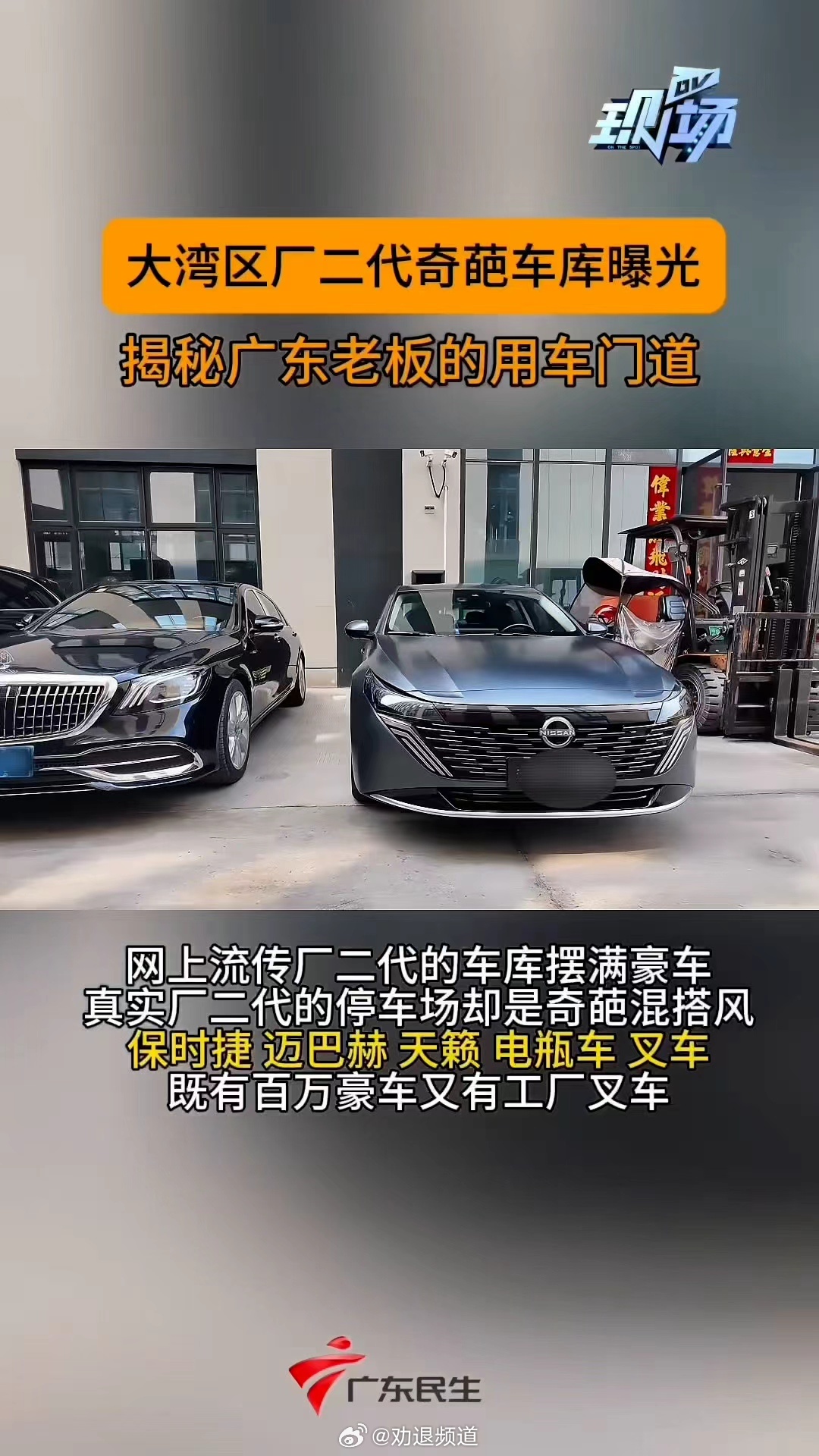 看到这个广东厂二代的车库,我算是明白了,网上“人均超跑”的传说,和真实的画风还是有点差别。撑场面有迈巴赫,干苦力用叉车,还有一台很踏实的天籁。