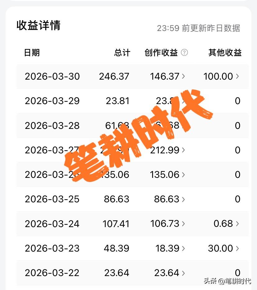 真是白高兴一场!昨日21万多微头条阅读量,看收益简直吓一跳!有240多元。如今根本不敢相信还有这么高的单价! 昨日收益出来有点晚,我都数不清,不知几次翻看了头条收益。心里很期盼有多少收益,因为这次阅读量达到了20万加。 要知道我已好长时间没有这么高的阅读量了,心里特别激动,直到看到收益一喜一失望。 起初看到240多元收益,算算一万单价也有20来块,对于微头条而言,已经算高了。有时文章收益还不一定达到。 接着再点击收益提现,看看这周赚了多少,竟然看到其他收益“100元”,瞬间懵住了! 再仔细一看,原来是领航新锐节节高的奖励。上周总阅读量等于或超过10万就可获得。 其实阅读量收益只有140多元,一万单价才7元,这也太低了! 今年头条平台赚钱好难啊!