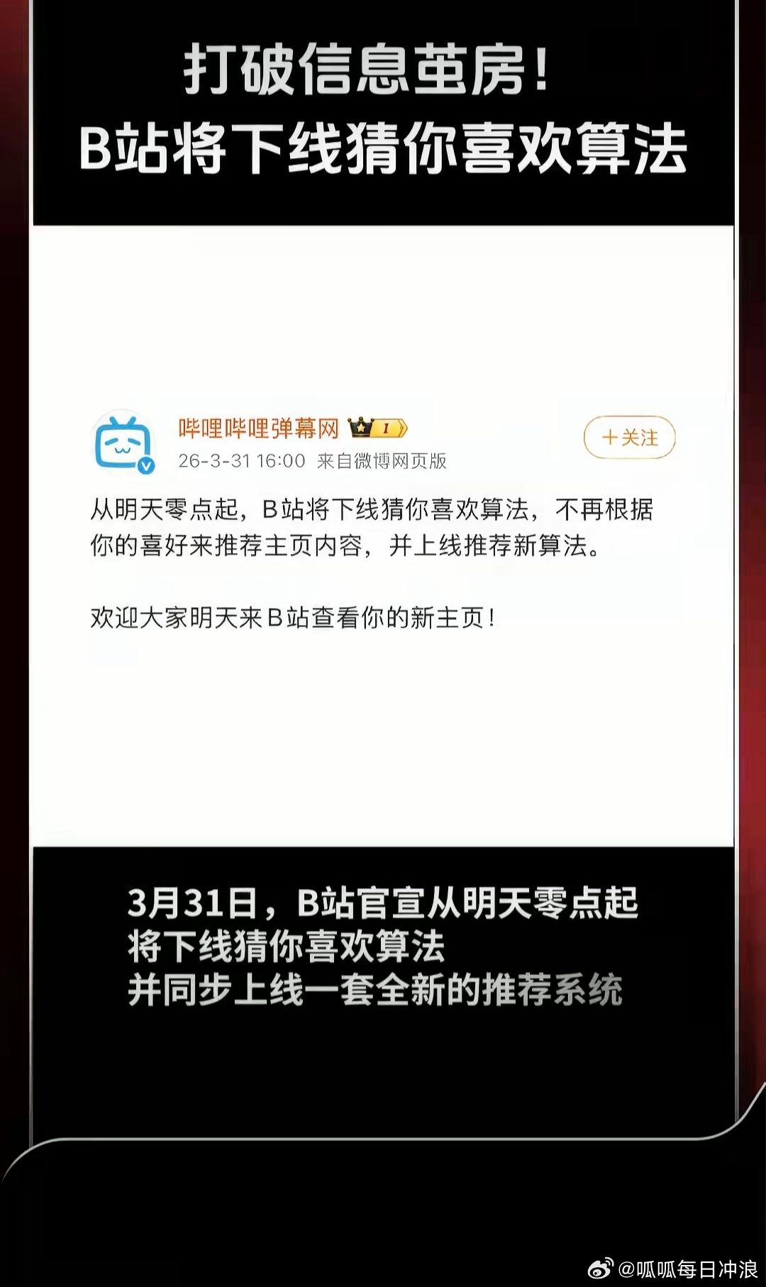 B站明日将下线猜你喜欢算法真的假的?可是明天愚人节诶。不过不得不说,如果真的不再根据你的喜好来推荐,感觉会有一套全新的体验!好好奇这次到底是什么新玩法,感觉会有一波大的?!B站这么懂我,相信一定会很棒蹲住0点。