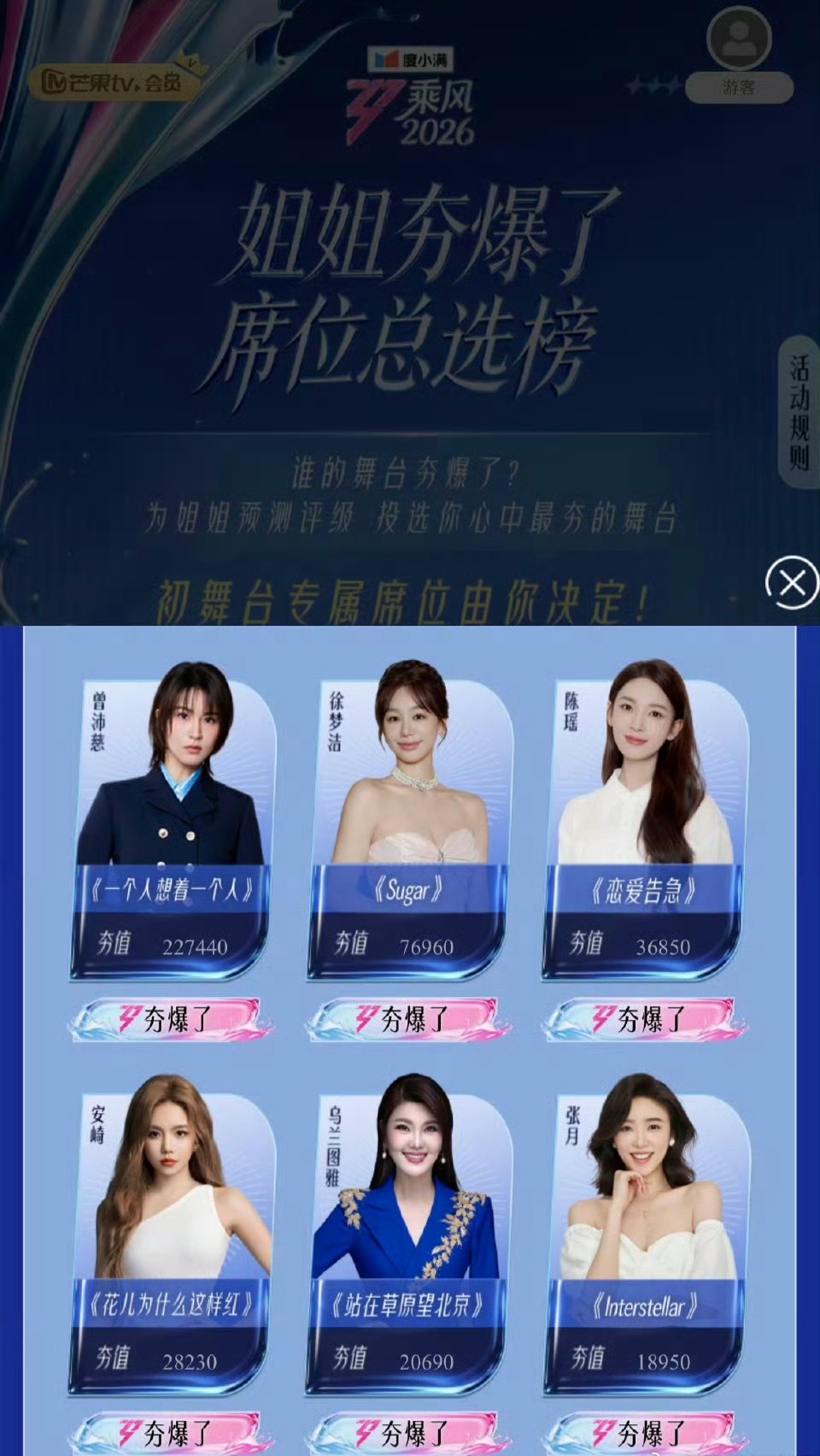 乌兰图雅人气乌兰图雅人气好高啊🤔,排名直接第五,期待姐姐浪姐的精彩舞台!乘风2026