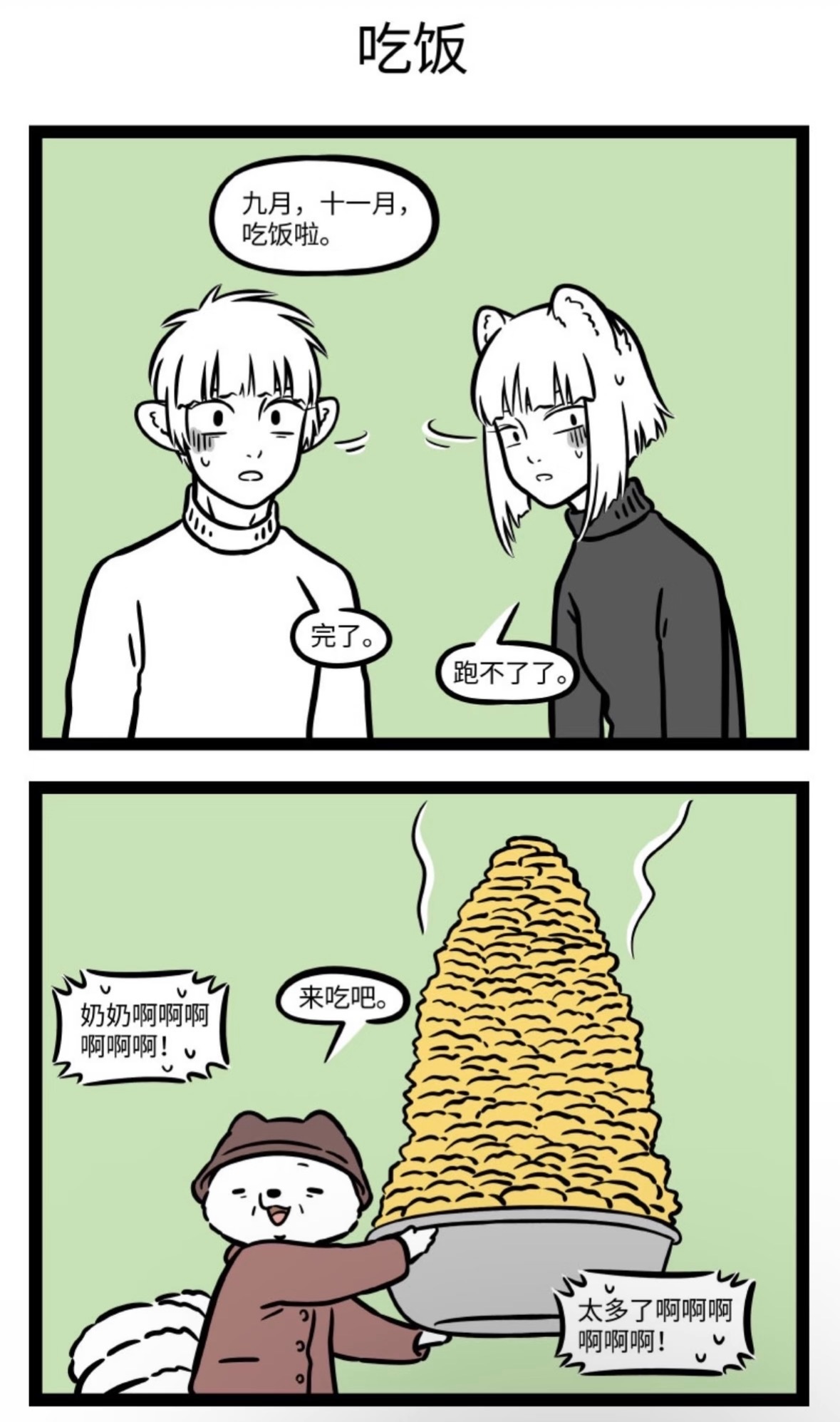 【非人哉 漫画】奶奶最知道你吃没吃饱了有一种饿叫做奶奶觉着你饿哈哈哈哈动漫点评团一人安利一部动漫非人哉