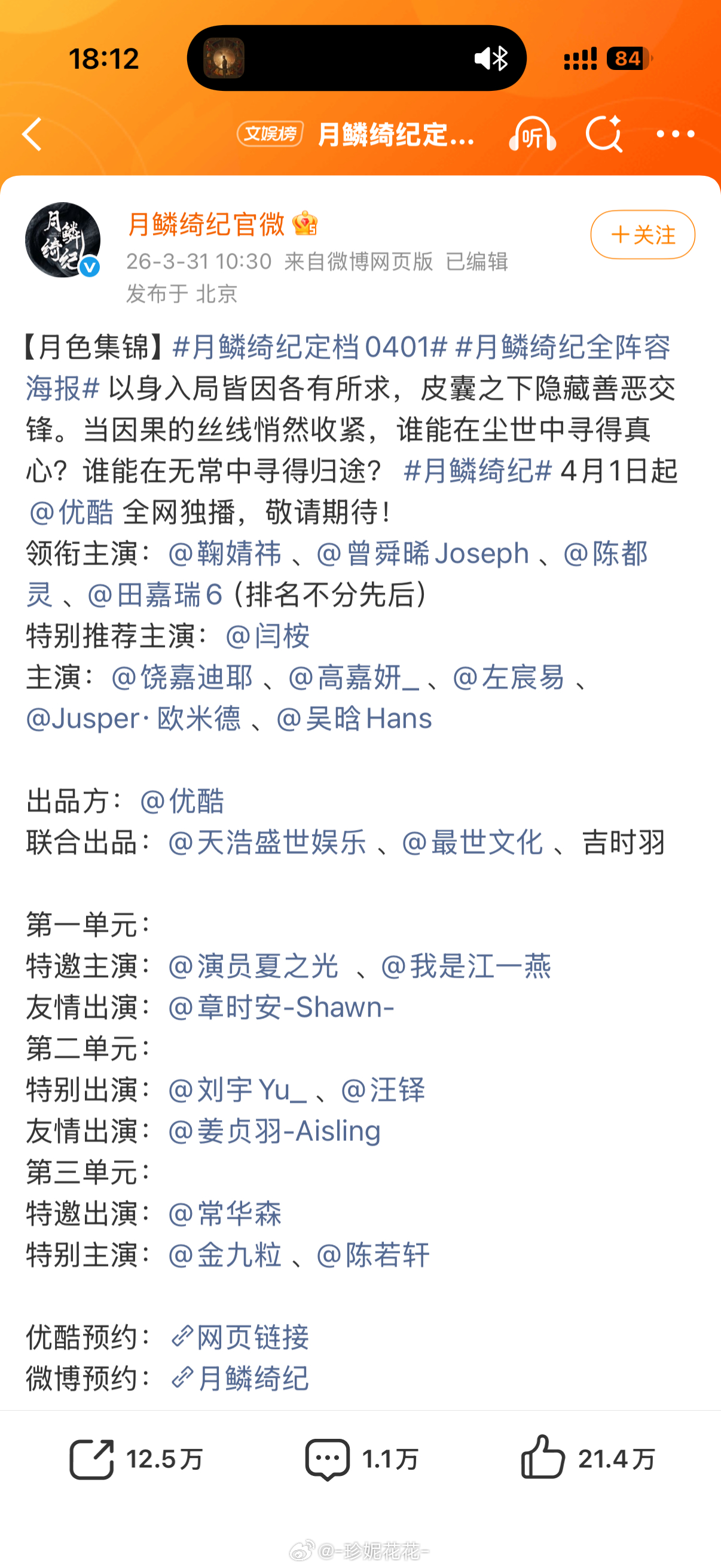 此时此刻祝愿小四新的电视剧明天能顺利播出