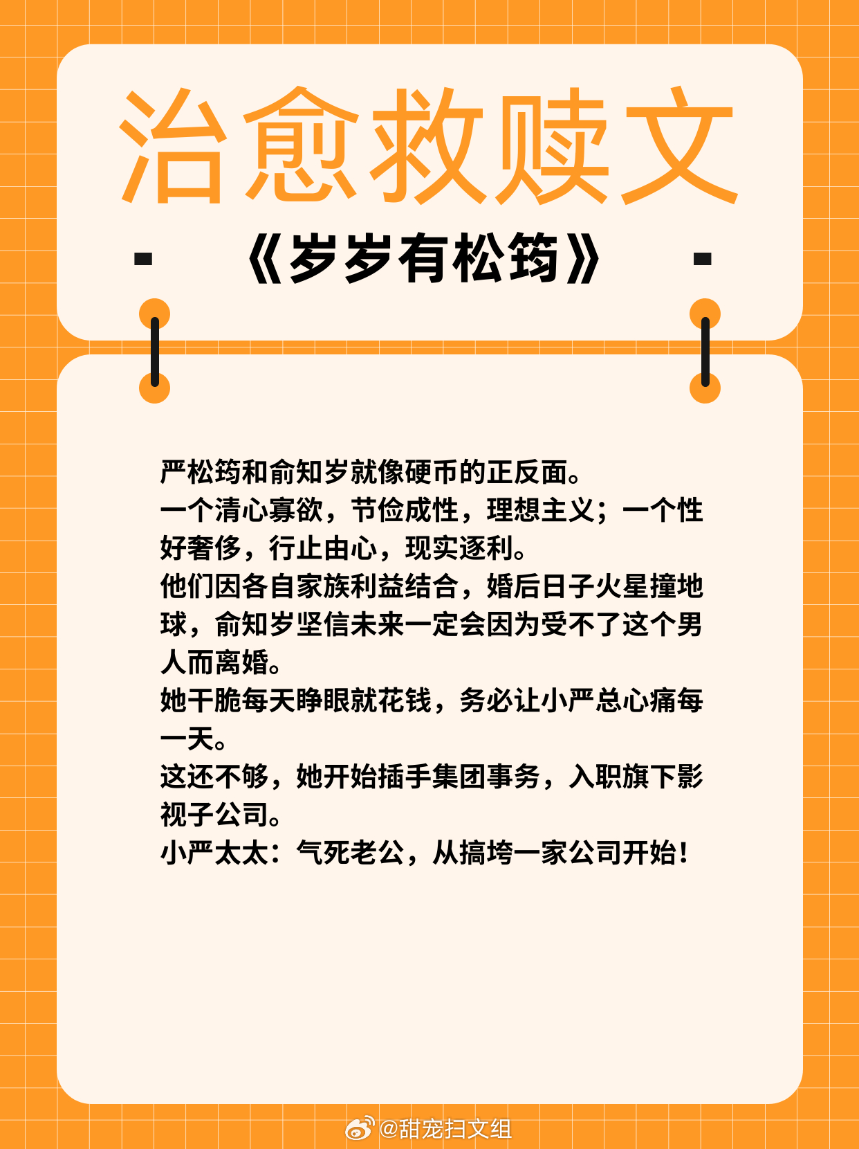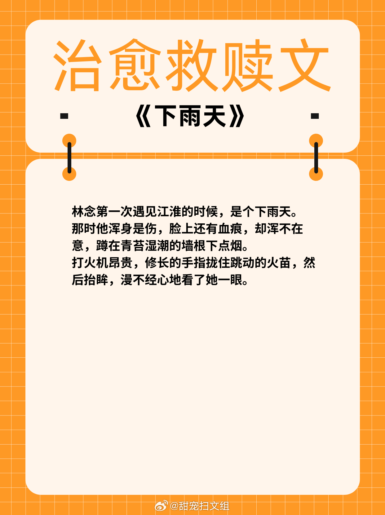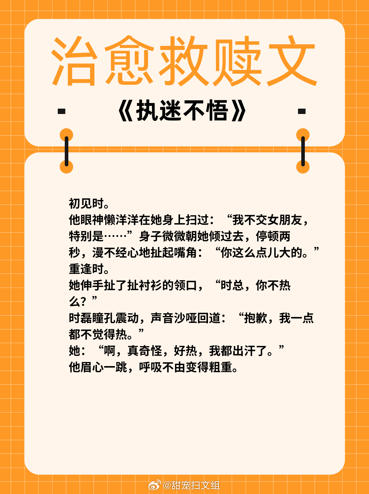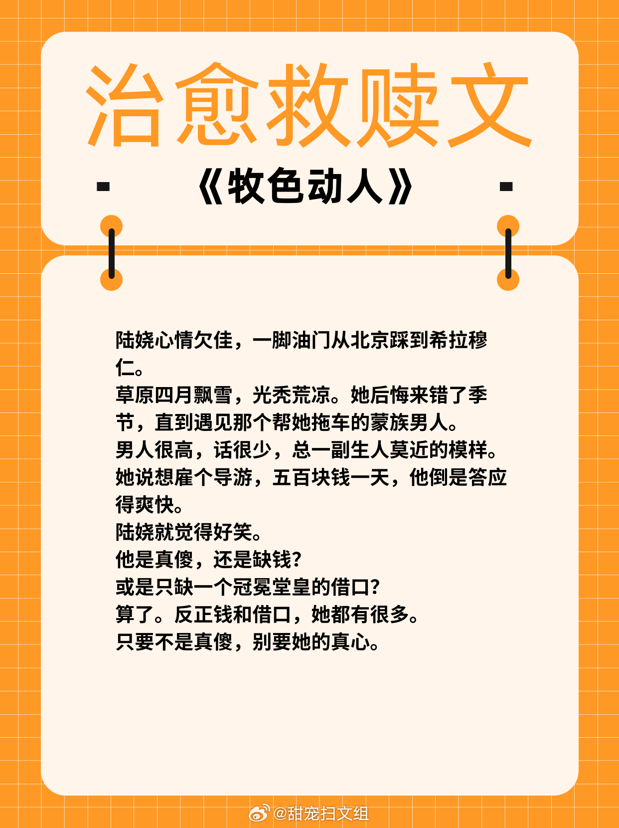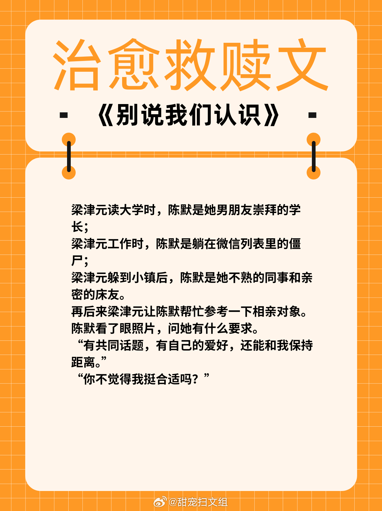 治愈救赎文,温暖甜宠!1、《女配坐等分手中》作者:盛夏的小扇2、《岁岁有松筠》 作者:山有嘉卉3、《别说我们认识》 作者:周演4、《牧色动人》 作者:魏夕三5、《下雨天》 作者:词枝6、《执迷不悟》 作者:飒然热门言情小说推荐 那些让我着迷的小说