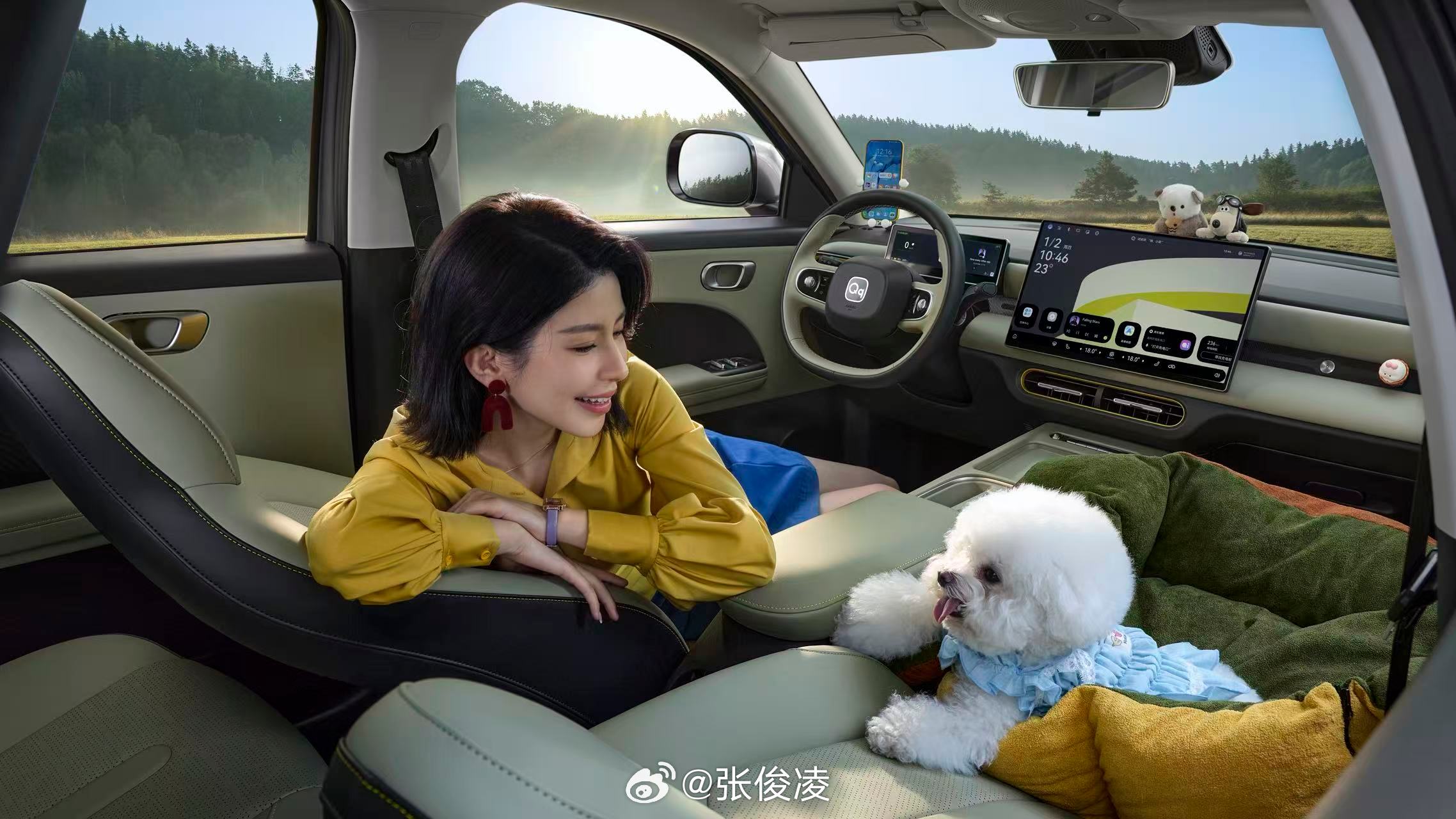 那如果预算能提一点,对舒适性和智能化有要求,又不用长续航,310分享版6.79万就很合适,比热爱版多花9000块,升级的配置真的很实用。15.6英寸2.5K超清大屏看着就舒服,主驾电动6向调节,还有前排座椅的加热和主驾通风,夏天不烫屁股冬天不冻腰,这个体验提升特别明显。另外还能拿到自动泊车和智能电动前备箱,新手停车不费劲,前备箱放个背包、小物件也方便,注重用车体验的,这个版本的升级很划算。