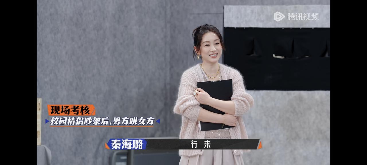 秦海璐的状态也太好了吧。粉色毛衣,长裙,淡妆,与小鲜肉演校园爱情。 老演员就是厉害,什么角色都能接住。 秦海璐参加演员选角的节目,她作为考官,被李诞提议与学员演校园爱情。秦海璐一上场,还是元气满满的。 好的演员就是这样,什么都能演。表情很到位,一个回眸真的很有小女生感觉。