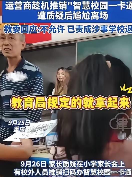 重庆一所小学的家长会现场,出现了让家长们集体愤怒的一幕。家长们按学校要求带着身份证到场,本以为是处理学生学籍相关事宜,没想到班主任只讲了不到10分钟的常规班会内容,就把讲台让给了两名穿着运营商工服的陌生人。 这两人上台后,便开始推销一款年费120元的“智慧校园一卡通”,称能实现人脸识别入校、学生定位、家校通话等功能。有家长当场举手质问,这款卡是不是教育部门统一要求办理,有没有正式的官方文件,对方当场支支吾吾,只反复强调是学校推荐、自愿办理。 更多家长的火气瞬间被点燃。有家长直言,自己特意带身份证来,原本以为是为了孩子的学籍事宜,没想到竟是给商业机构收集个人信息。大家奔赴家长会,是出于对学校的信任,想了解孩子的在校学习情况,结果学校却把教书育人的教室,变成了商业推销的场地,这份被辜负的信任,才是最让人心寒的。最终,在场家长集体发声,把两名推销人员轰出了教室。 这类事件,早已不是第一次发生。2024年9月,重庆开州区一所小学就出现过一模一样的情况,同样是推销120元年费的智慧校园卡,还有校领导帮忙站台,最终被家长实名举报,涉事校长被停职,所有办理费用全额退还。山西运城一所中学也曾强制学生办理电子学生证,每人收费300元,事发后被监管部门查处,清退违规收费51.3万元,相关负责人也受到了处分。 针对这类行为,教育部早已三令五申,2022年就专门通报过校园违规收费典型案例,明确严禁以教育信息化的名义乱收费,严禁学校以向学生推销商品、服务的方式谋取利益,相关法律也明确规定,校园内禁止任何形式的商业推广活动。 可即便有明确规定,这类事件还是屡禁不止,核心就是利益驱动。一张卡120元,一所学校数百上千名学生,就能带来一笔可观的收益。部分学校能从中拿到推广相关的好处,或是把这类合作当成校园信息化的相关成果;运营商则精准盯上了家长群体,拿捏了家长怕得罪学校、担心孩子在校被区别对待的心理,哪怕嘴上说自愿,也形成了软性约束,让很多家长碍于情面不得不办。 智慧校园建设,本意是方便家校沟通,守护学生在校安全,是有益于教育和学生的事,只是不能变了味道,沦为商业牟利的工具。真正的校园信息化服务,本该由教育部门统一规划统筹,要么公益免费,要么按成本合理定价,不该由商家主导,把校园变成营销场所。 遇到这类情况,家长们不必有过多顾虑,只需问清三个核心问题:有没有教育部门的正式文件,是不是完全自愿、不办理不会影响孩子在校的正常学习生活,有没有强制要求。只要对方回答含糊,就可以直接拒绝,也可以向当地教育监管部门举报维权。很多家长怕得罪学校选择忍气吞声,可这样的妥协,只会让这类违规行为愈发频繁。 学校是教书育人的场所,本该保持纯粹。当教育场所沾染过多商业气息,受损的不仅是家长的权益,更是教育本身的公信力。希望当地监管部门能严查此次事件,给所有家长一个明确的交代。你有没有在家长会上遇到过类似的商业推销?