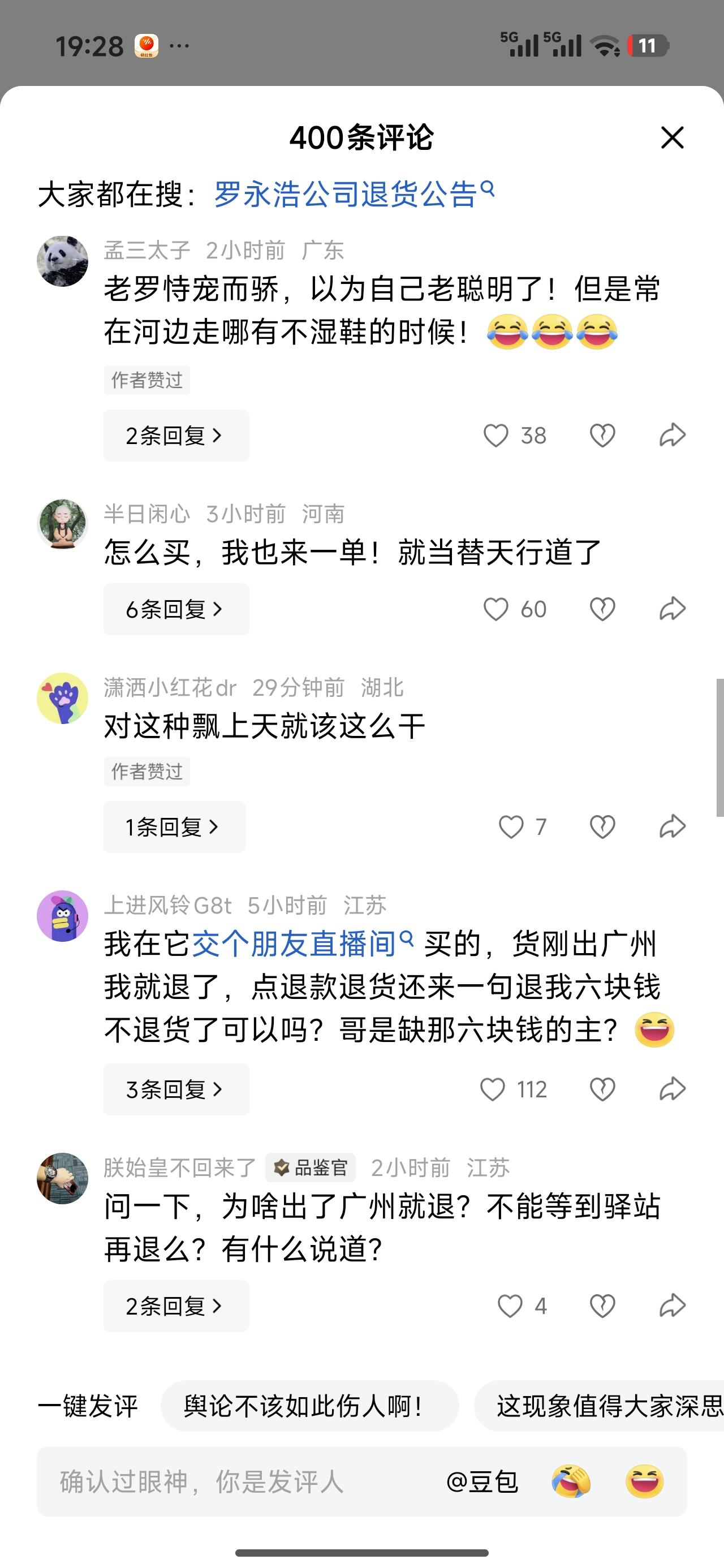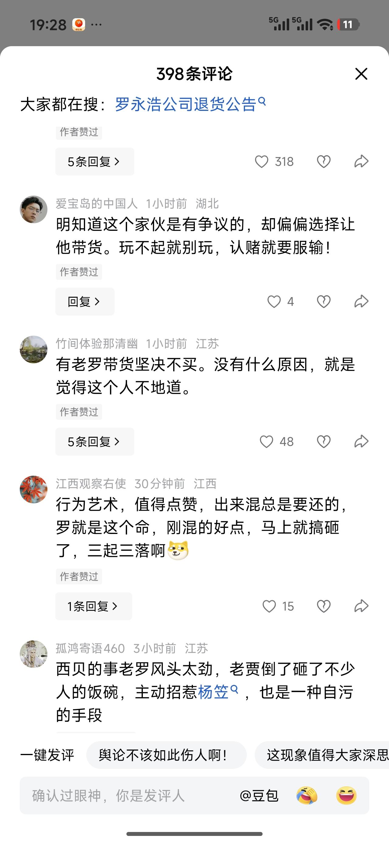 刚刷到老罗直播间里被疯狂退货,买家都挺逗的,到了中转站才开始退。老罗请了杨笠,看来大家很不满意。 有网友问,那六个小目标,还完了吗?有网友留言,早就完了。 直播卖货这么挣钱吗?老罗不是早就跟人家直播间切割了吗?有没有可能是网友误伤?杨笠究竟是个什么样的人?为什么大家这么讨厌她?说了过激的言论吧!