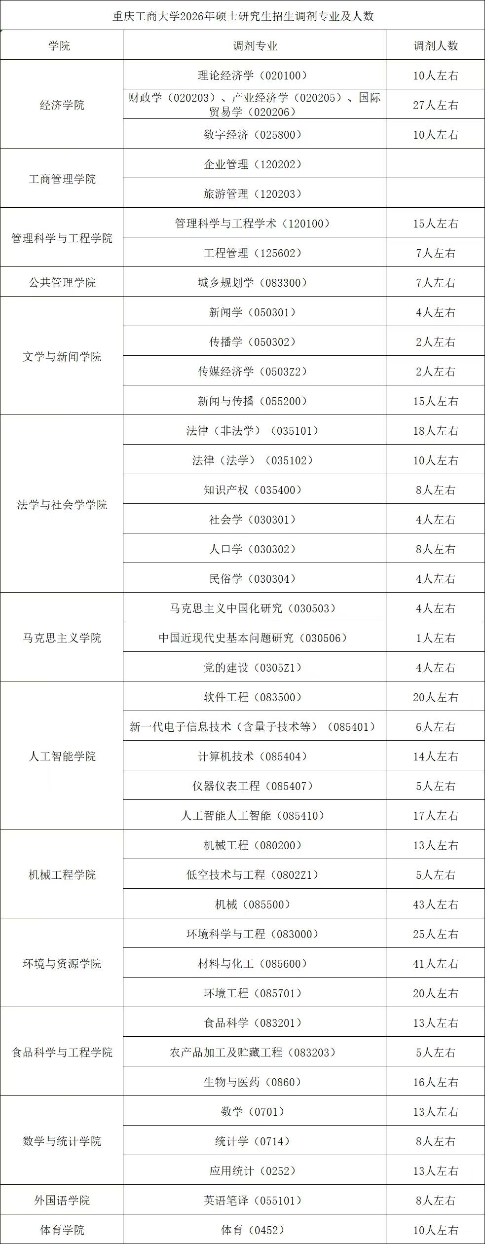 重庆工商大学发布了2026年硕士研究生招生调剂公告,其中机械(085500)调剂43人左右、材料与化工(085600)调剂41人左右、软件工程 (083500)20人左右、环境科学与工程(083000)调剂25人左右、环境工程(085701)调剂20人左右。(具体调剂条件可以登录重庆工商大学各学院官网查看)