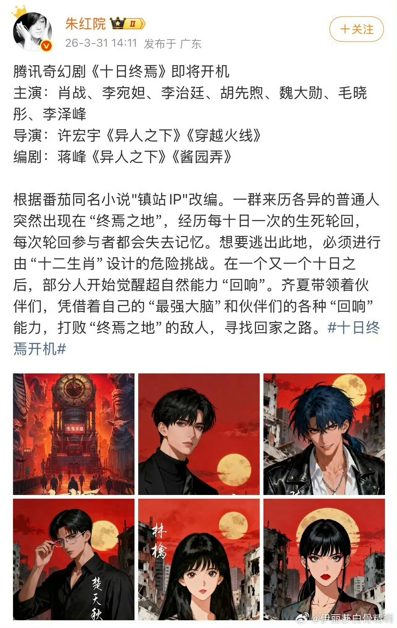 《十日终焉》的网传演员阵容肖战 李宛妲 李治廷 胡先煦 魏大勋 毛晓彤 李泽峰