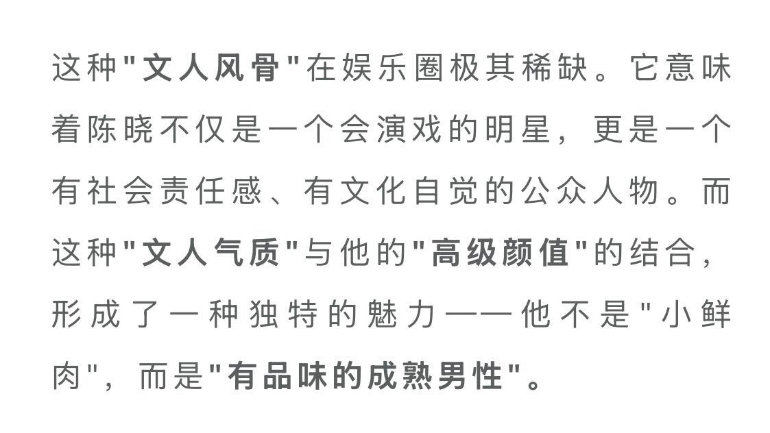 演员脸的天花板,应该就是陈晓 这样吧?自带故事感,凌厉的锋芒之中带着温润的谦逊,疏离与神秘之中又带着细腻的情绪,锐利却不会很过度,专注间却又松弛自然。他的高级颜值完全是靠顶尖实力、人格厚度与时光的沉淀支撑而来,所以很多人会认为他帅得很有内涵、很有质感🙂↕️让人印象深刻的颜值,相信无论和什么品牌合作都能带来无可替代的高级氛围吧
