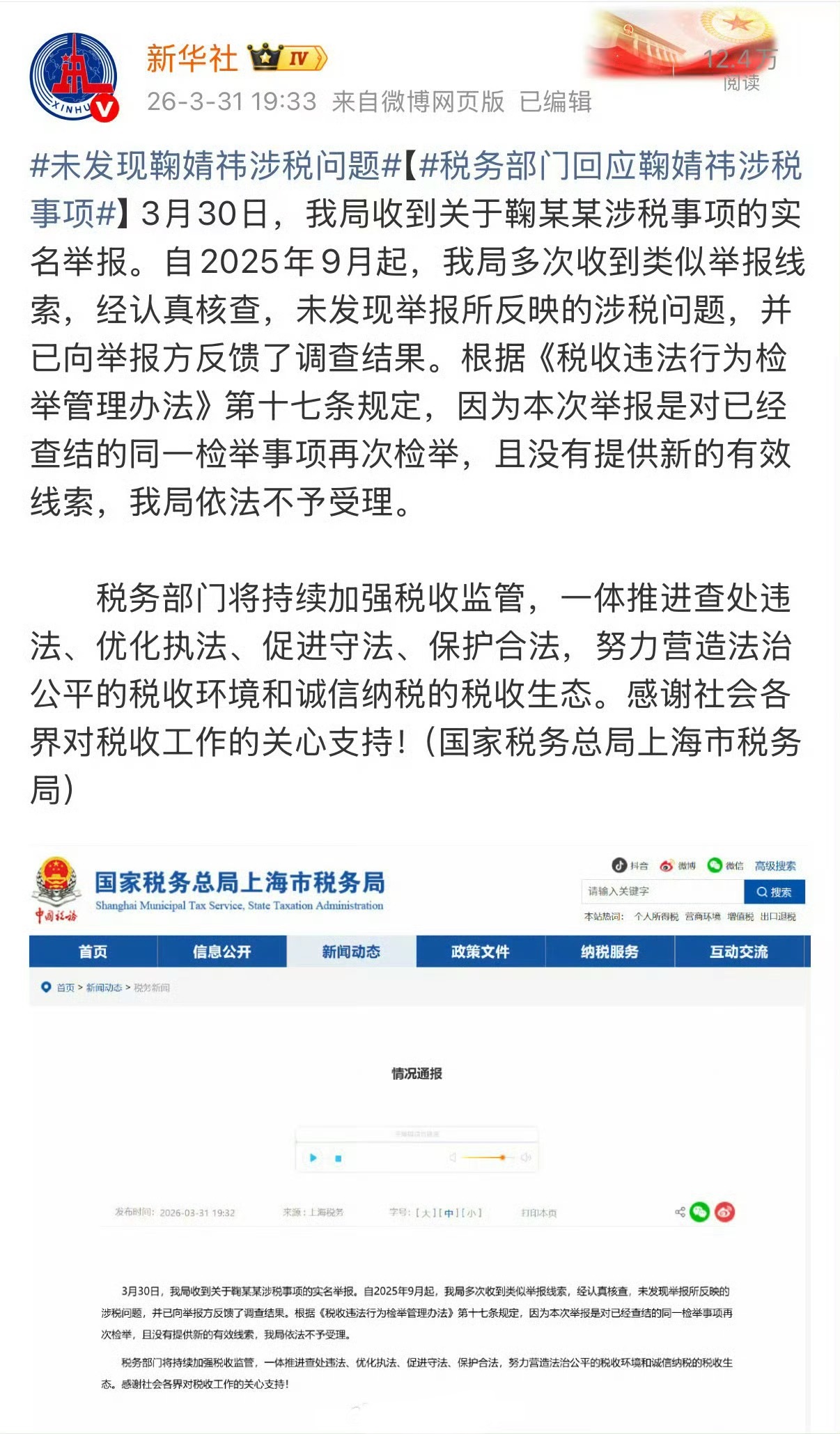新华社:未发现鞠婧祎涉税问题!丝芭三问鞠婧祎