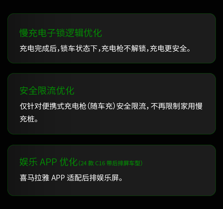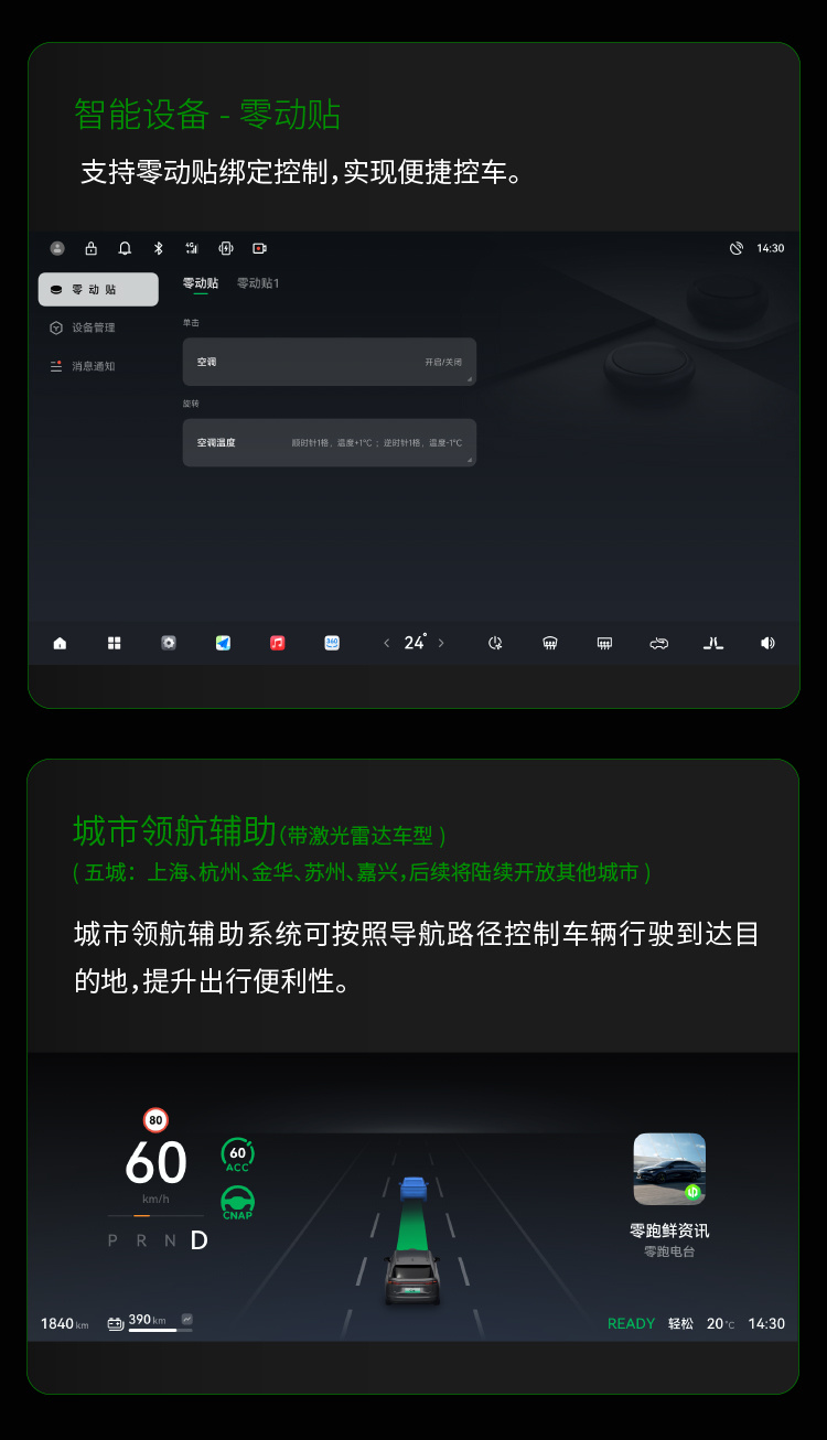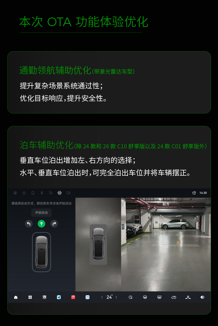零跑汽车 C系列OTA更新啦!围绕智能驾驶、座舱体验、便捷功能三大维度全面优化新增360轮毂辅助、娱乐APP、智能设备零动贴等5项功能优化通勤领航辅助、泊车辅助等10项体验给你更流畅、更安全的用车体验~更新细节与使用说明,点击下方一探究竟零跑C10零跑C16零跑C11