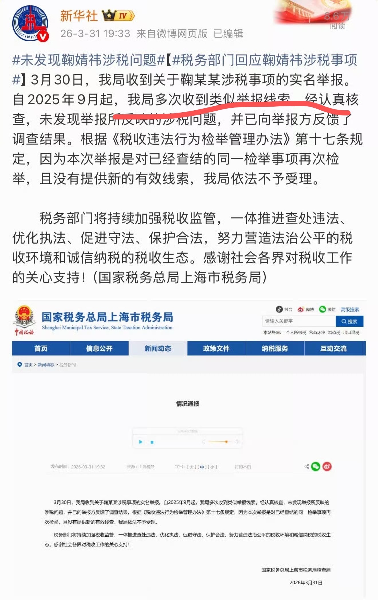 官方已回应经调查未发现鞠婧祎有税务问题…真的认识到任何明星想解约都要扒层皮,丝芭反倒发声明说自己受害者了