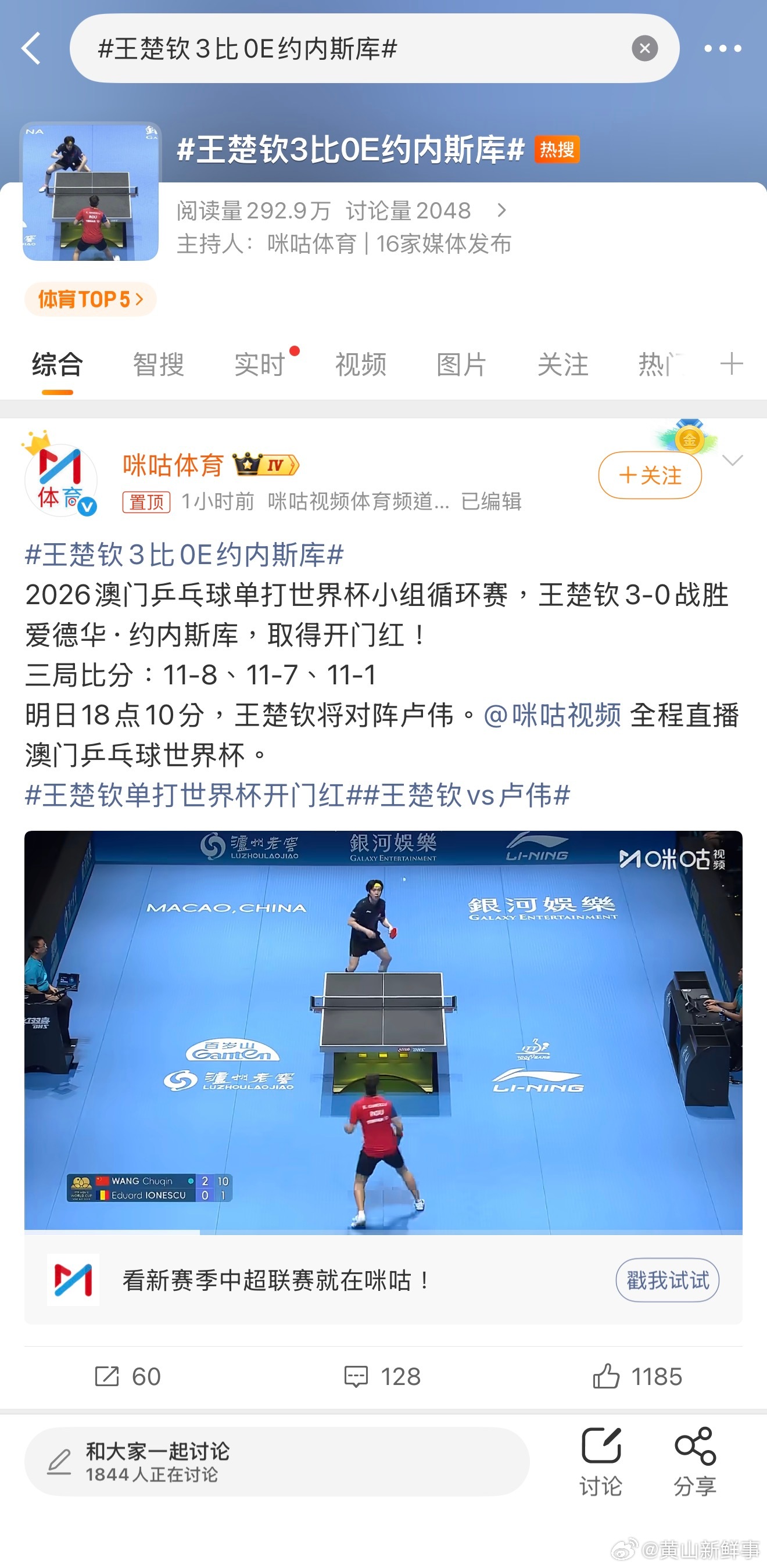 王楚钦3比0e约内斯库澳门世界杯首秀,世界第一火力全开🔥3-0横扫爱德华·约内斯库,比分11-8、11-7、11-1首局8平后连拿3分破局,第三局轰出11-1碾压局全程控场、攻防拉满,仅26分钟拿下开门红稳住国乒男单军心,继续冲冠!