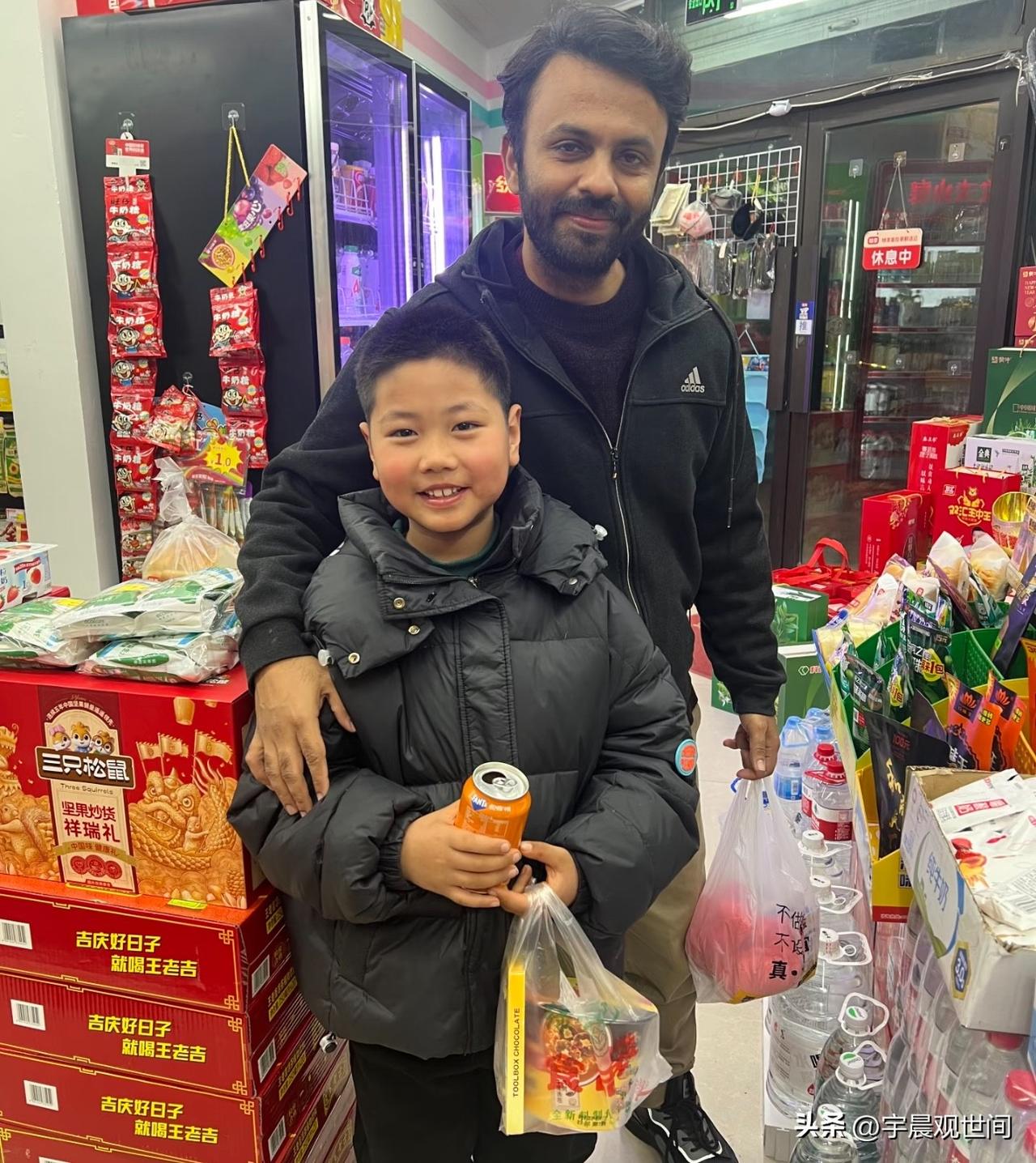 今晚有一位巴铁进我家店买东西, 孩子第一次看见巴基斯坦人很高兴, 与外国友人进行合影,因两国友谊深厚, 我也很爽快的给巴铁免单了! 中巴一家亲。