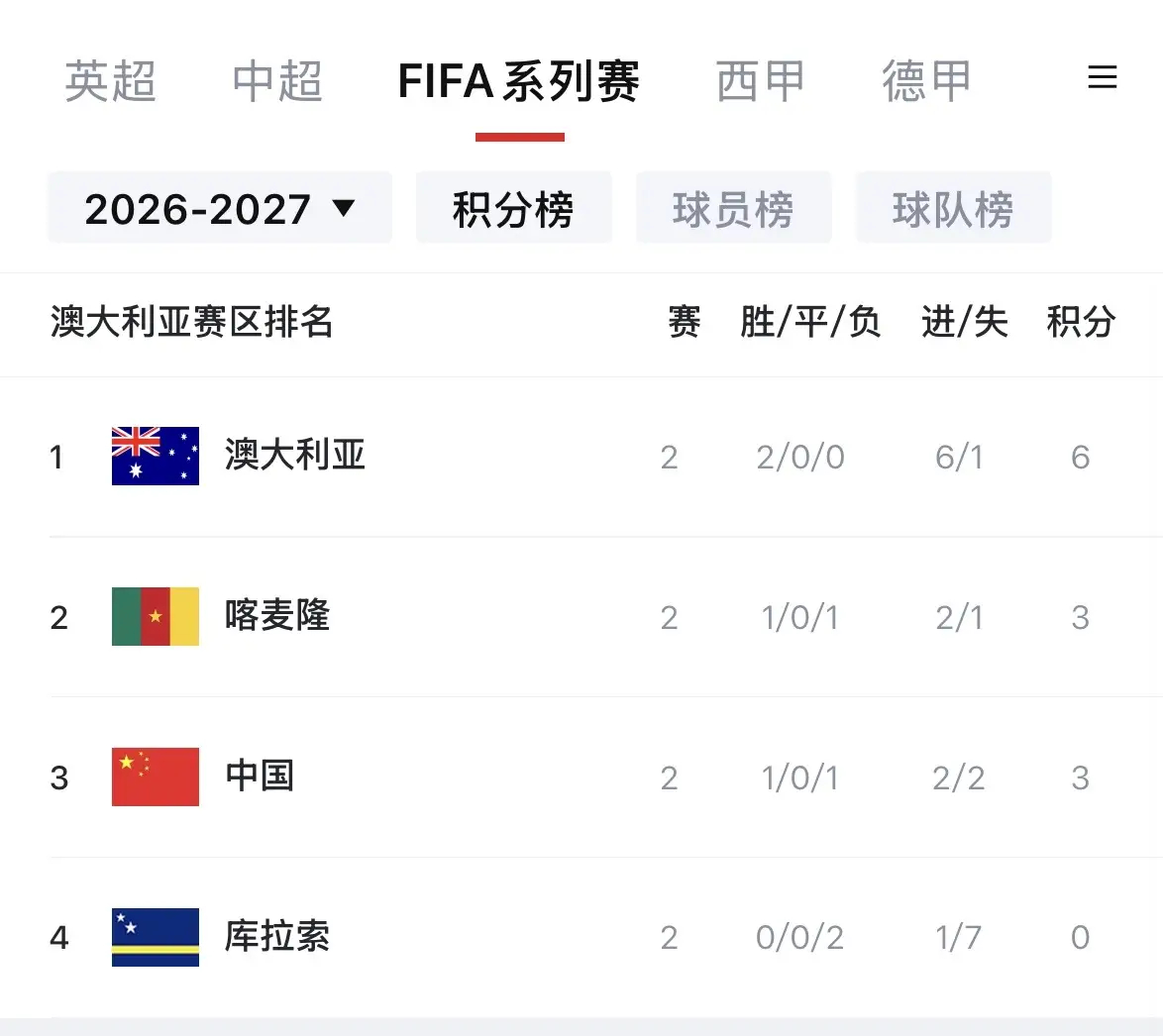 今日结束的FIFA系列赛中,中国队0-2不敌喀麦隆。在上一场比赛中,中国队2-0战胜库拉索,两场比赛收获一胜一负的战绩。
