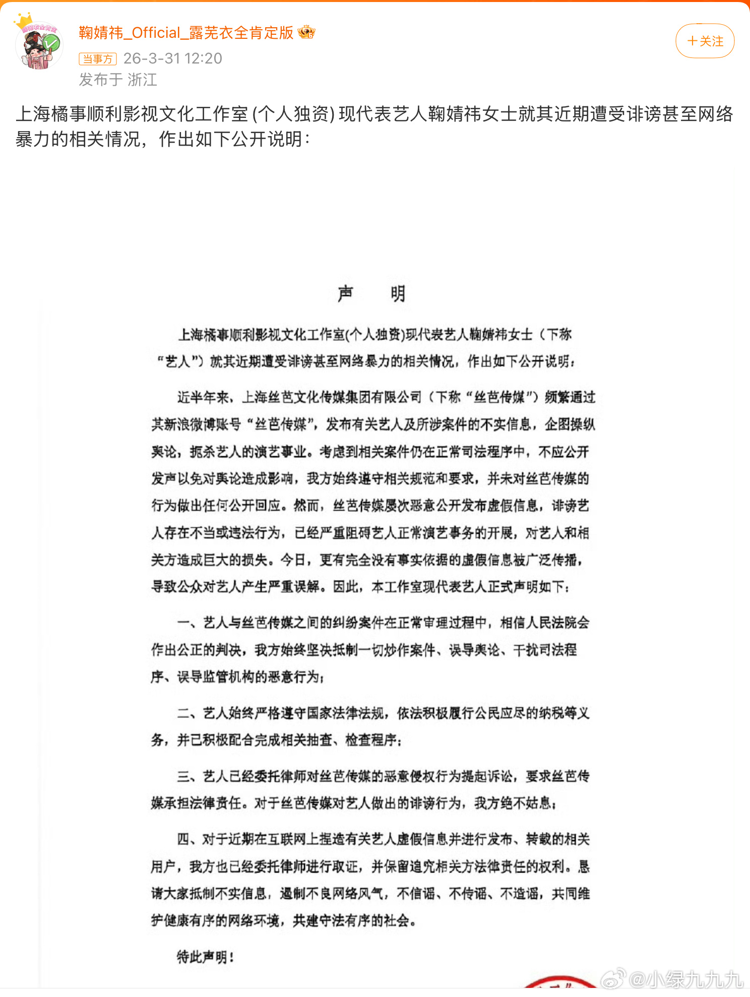 未发现鞠婧祎涉税问题至此鞠婧祎此身明了这公司真像个恶心笑话