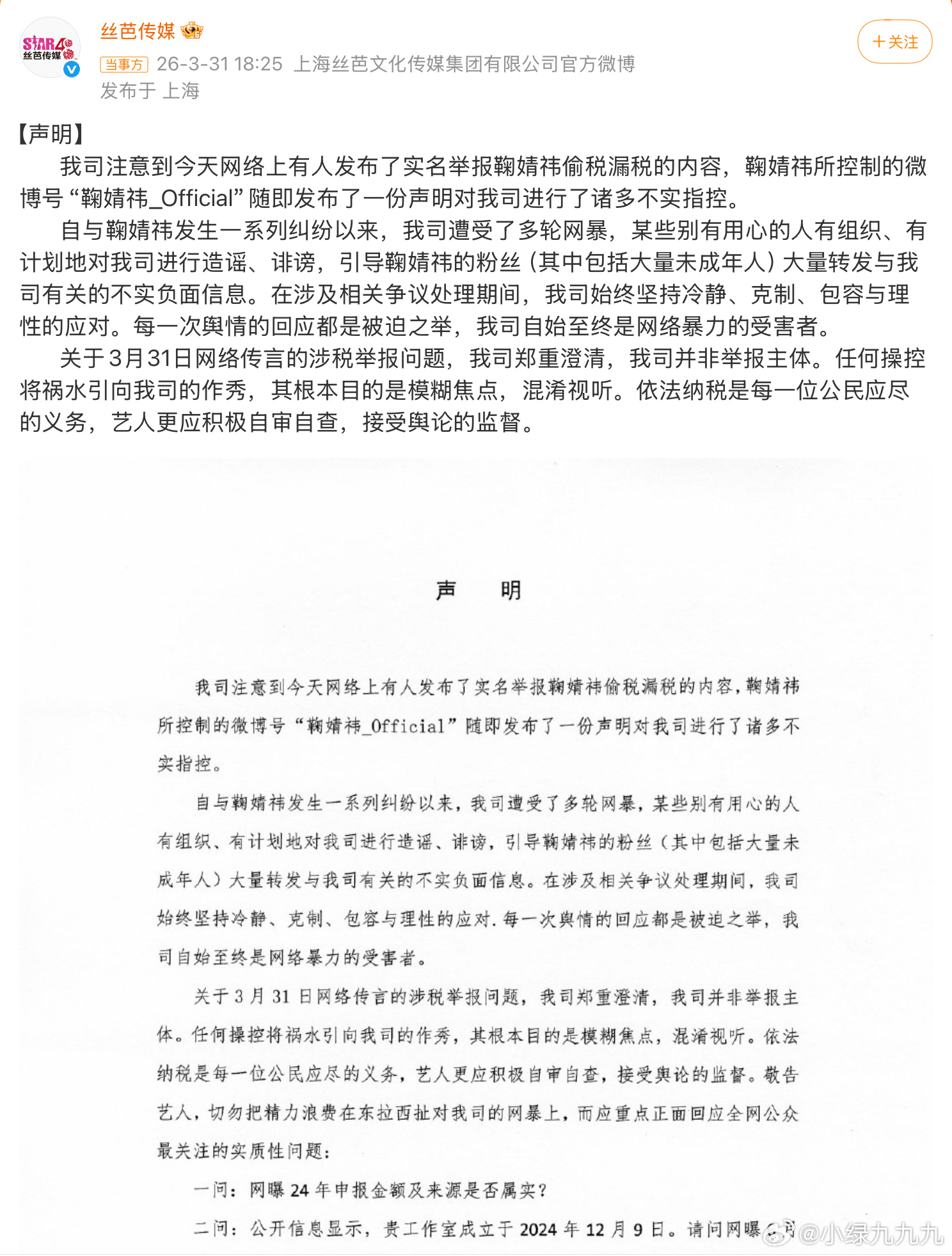 未发现鞠婧祎涉税问题至此 鞠婧祎此身明了 这公司真像个恶心笑话