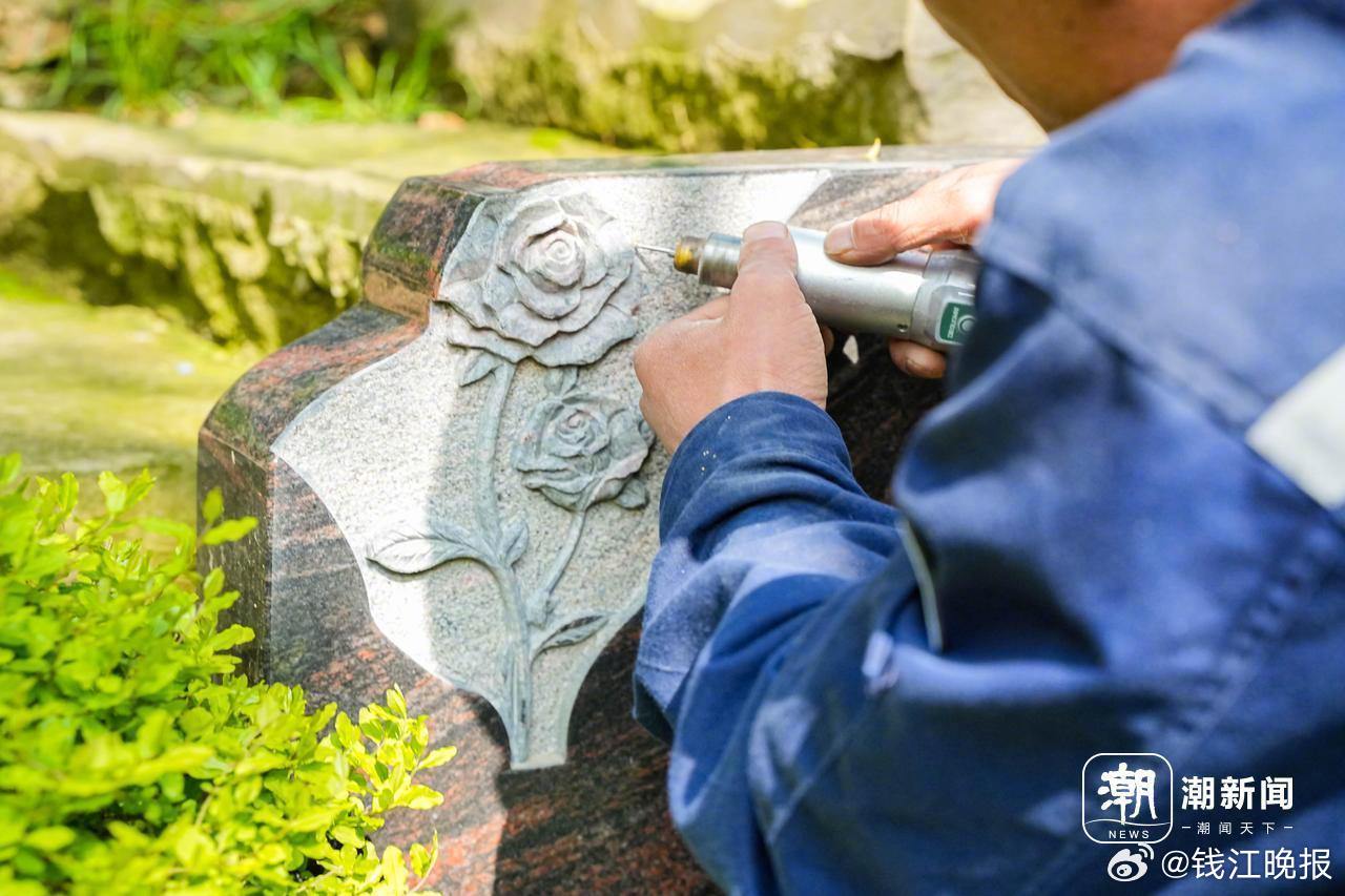 #90后墓碑雕刻师刻过超万块碑#【90后墓碑雕刻师徐云峰:石头不语,却胜过千言万语】#90后男子刻的墓碑最小2岁最大103岁# 山上很安静。徐云峰蹲在墓碑前,已经三个小时了。在他身后三步远的地方,一个五十多岁的男人静默站立,眼泪无声淌过脸颊。男人的目光追随着徐云峰的磨刀,看他一笔一画将亡妻的名字深深镌刻在冰冷的石头上。最后一笔落定时,徐云峰轻轻吹去石面上的浮灰。男人这才开口,声音很轻,像是怕惊动什么:“她是因为车祸……”他说,出事的时候自己昏迷了,妻子还清醒着。救援赶到时,她说的第一句话是:“先救我老公。”“后来我才知道,那时她受伤已经很严重了。”男人的声音断了,眼泪又涌出来,“等她被救出来的时候,来不及了……”“这块墓碑我一直记在心里。”清明节前夕,潮新闻记者跟随90后墓碑雕刻师徐云峰走进他工作的杭州径山竹茶园,听他讲述一个个隐藏在静谧角落里的人间故事。他一边走,一边回头看向那座碑的方向,“那位妻子很伟大,为爱人付出了生命。每次想起,我就越发觉得,要珍惜身边人。”微风吹过,墓碑不语,却胜过千言万语。