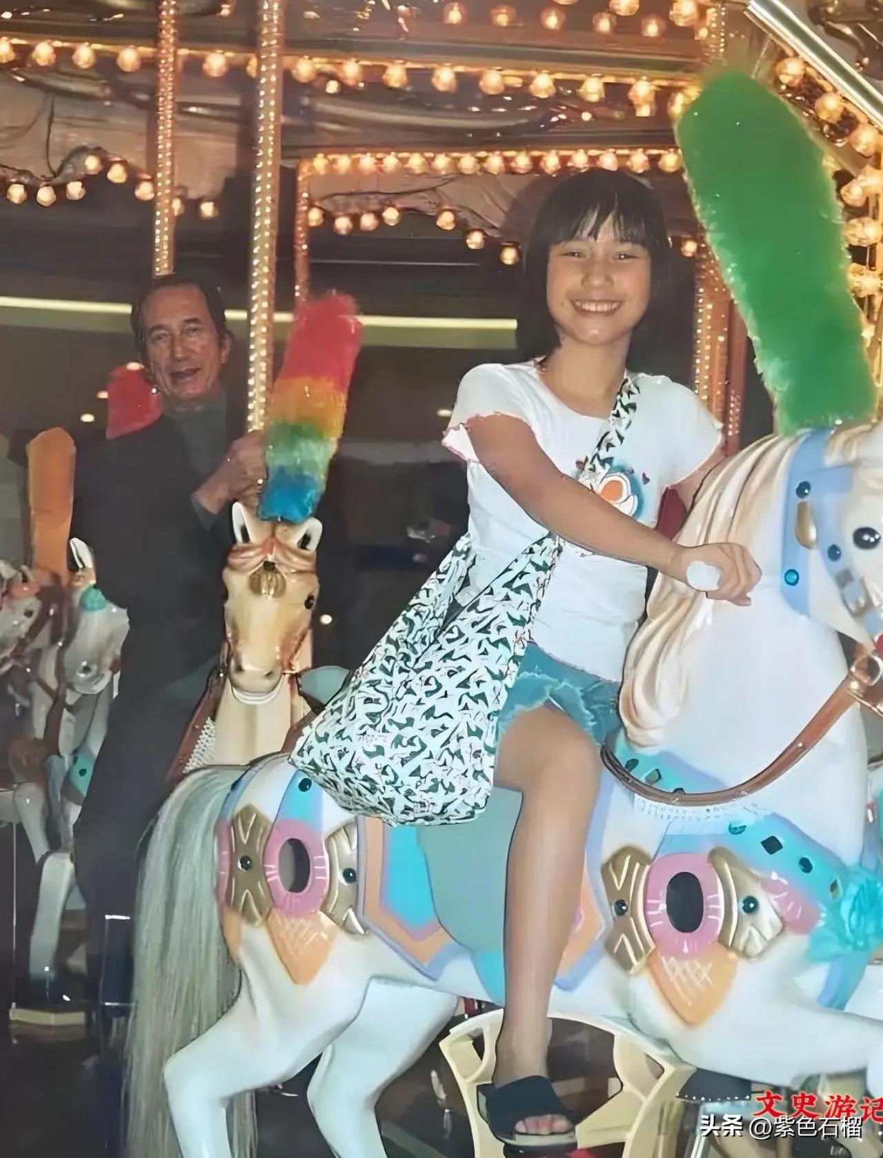 这或许是赌王何鸿燊仅有的一张骑旋转木马的照片,他陪伴的对象正是他的宝贝女儿何超琼。这张照片摄于上世纪70年代,彼时八九岁的何超琼坐在木马上,背着一个造型夸张的碎花大包,在父亲的陪伴下,笑容格外灿烂。这张照片也成了何超琼与父亲难得的珍贵留影。 (图片来源网络)