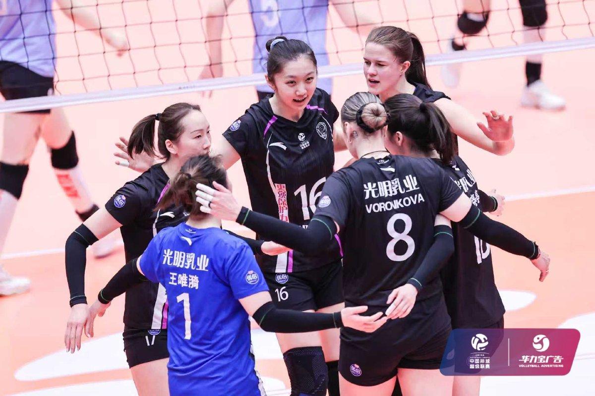 总决赛第一场,上海队0-3脆败给江苏队,本场比赛只有获胜地,才能有机会在第三场比赛中与江苏队争夺冠军。今晚这场比赛中,上海队和江苏队都派上主力阵容,上海队两个外援打嗨了,范赖克和沃隆科娃的发球和进攻都给了对方极大的威胁。上海队今天最成功的就是发球,她们发球得分就有13分,没有直接得分的,也给江苏队的一传造成很大压力。发球找人找点很准,差不多用发球已经把唐欣信心打掉一半了,再对她着重盯防,唐欣今天真是苦不堪言。吴梦洁一传也不好,但进攻还没什么大问题,只不过她自己也是独木难支。 再看上海队这边,两大外援范赖克和沃隆科娃轮番开轰,仲慧今天的状态也不错,上海队的进攻打得还比较流畅。这场比赛,上海队进攻得47分,江苏队38分,范赖克独得20分,沃隆科娃19分,仲慧11分。而江苏队,只有吴梦洁一人得分上双,得到18分,得分第二高的是副攻万梓玥,得到9分,唐欣只得到7分。 明晚7点,将迎来最后的决战,究竟是江苏技高一筹、卫冕成功,还是上海众志成城、多年后再夺冠军,大家拭目以待。 另外,今天的比赛中五位奥运冠军惠若琪、林莉、魏秋月、颜妮和张常宁都在看台前排就座。据悉,明晚她们也会现场观战,并出席排超联赛的颁奖典礼。