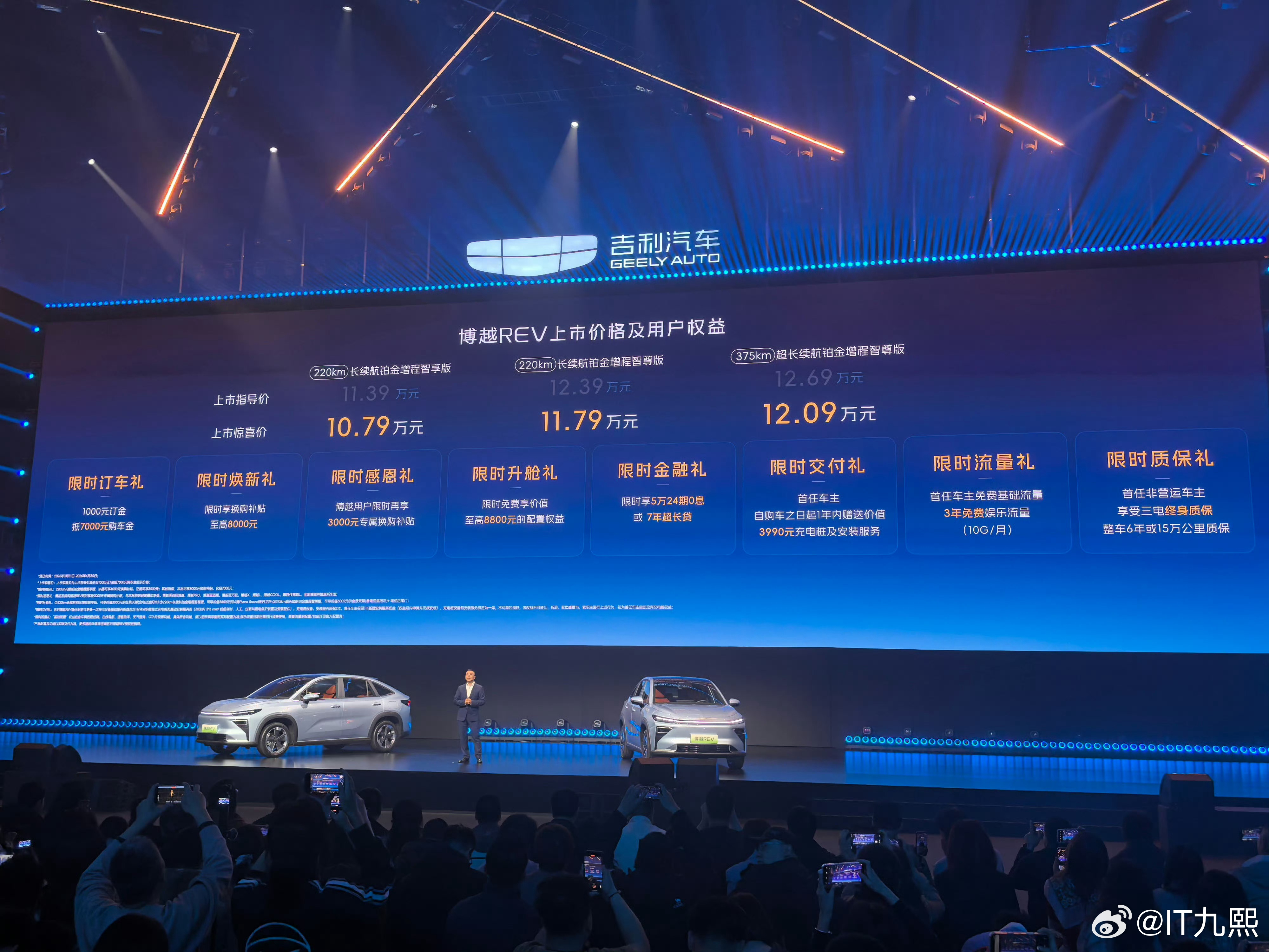 博越REV价格出来了,预售12.79万的起售价,上市直接干到10.79万,就连375km超长续航的顶配版,也才12.09万。先聊续航,这绝对是它最不讲理的地方。同价位的增程SUV,纯电续航普遍也就100-210km,日常通勤两三天就得找充电桩,而博越REV直接把纯电续航拉到375km,几乎是同级主流水平的两倍。