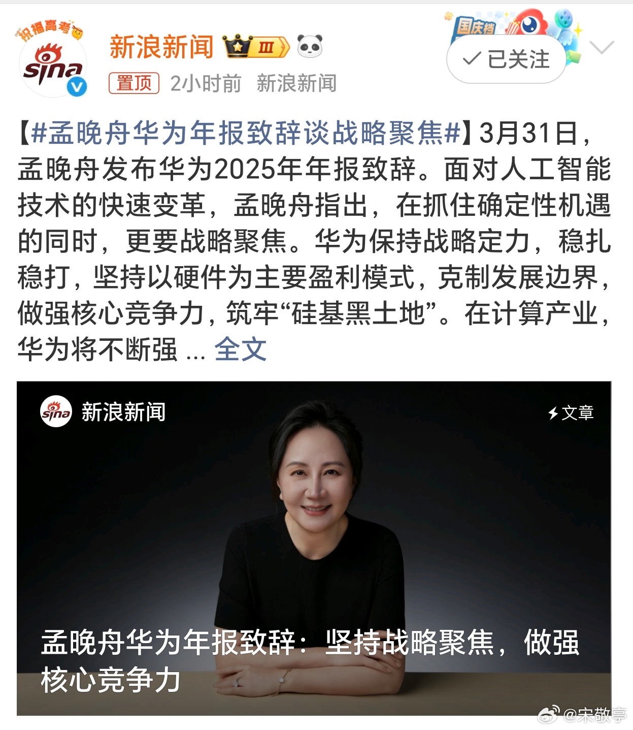 孟晚舟华为年报致辞谈战略聚焦从高研发投入来看,足矣验证孟晚舟所说的战略定力,做强核心竞争力。