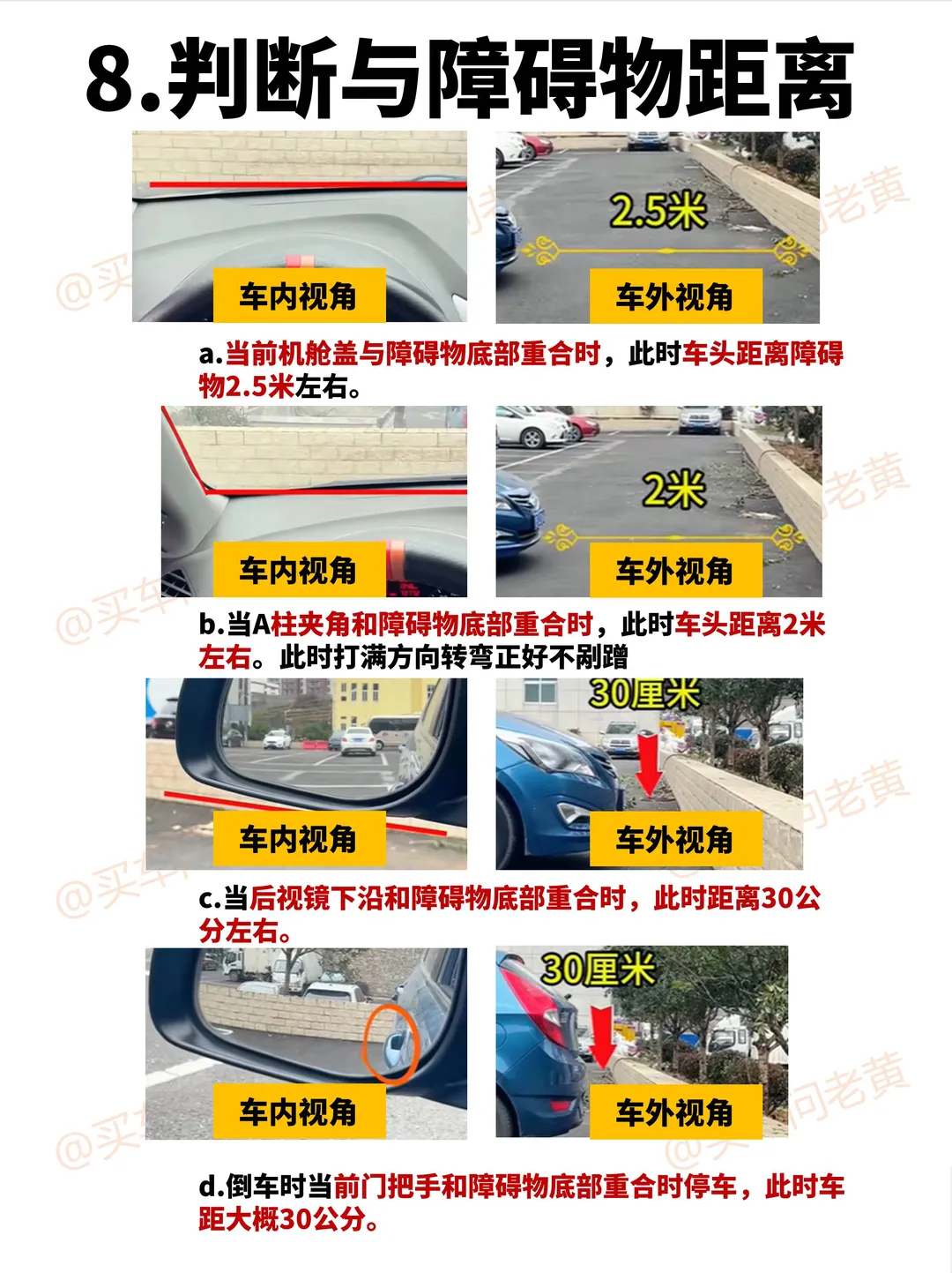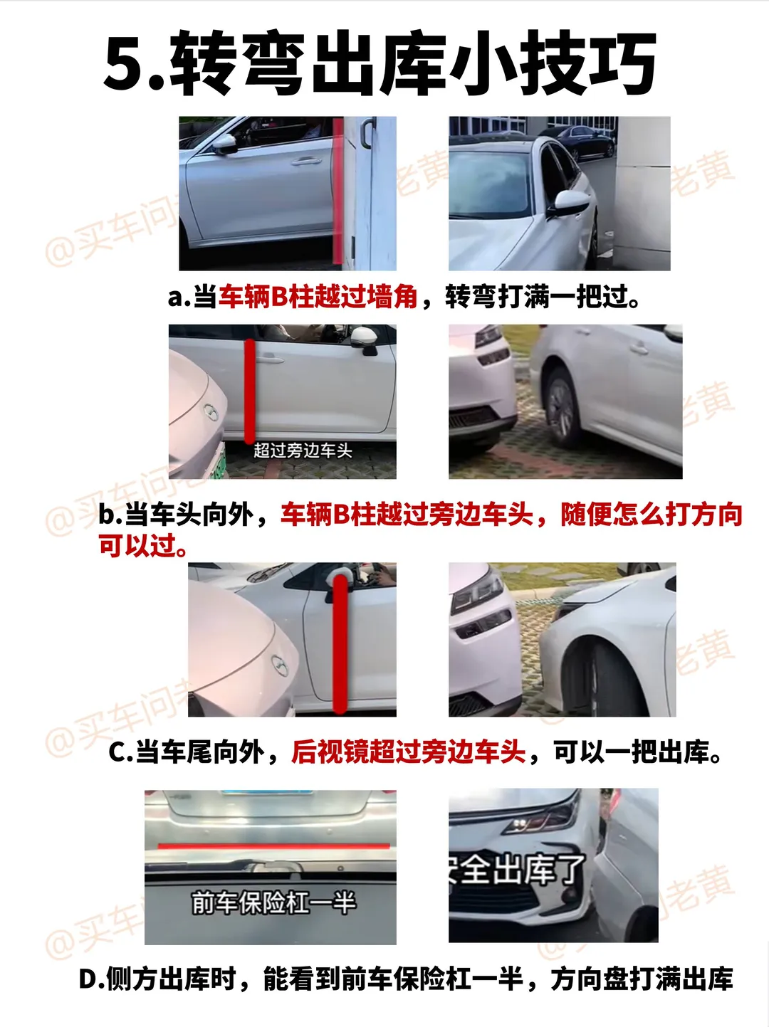 右转盯轮胎:机盖不超过前车轮胎一半,直接打满方向,绝对不蹭墙!