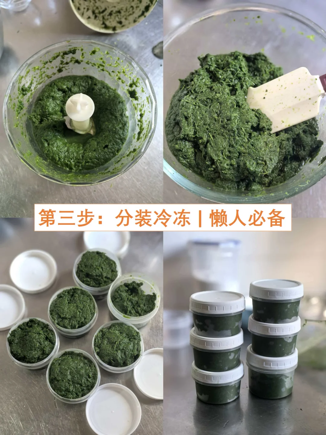 方法:此配方可得艾草泥约700g。按每份120g(约做16-20个50克的青团)分装冷冻。