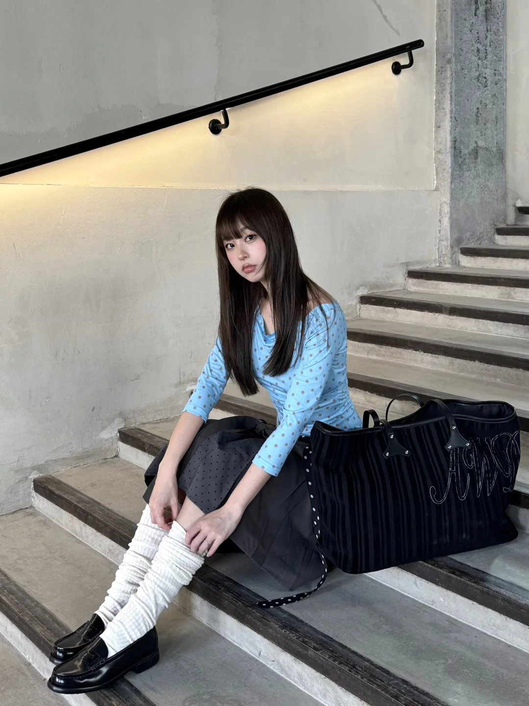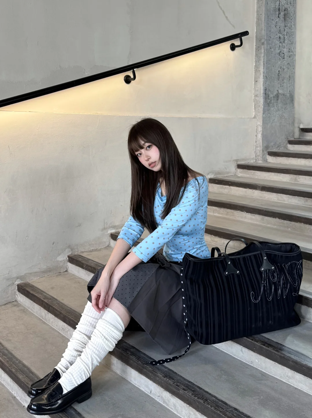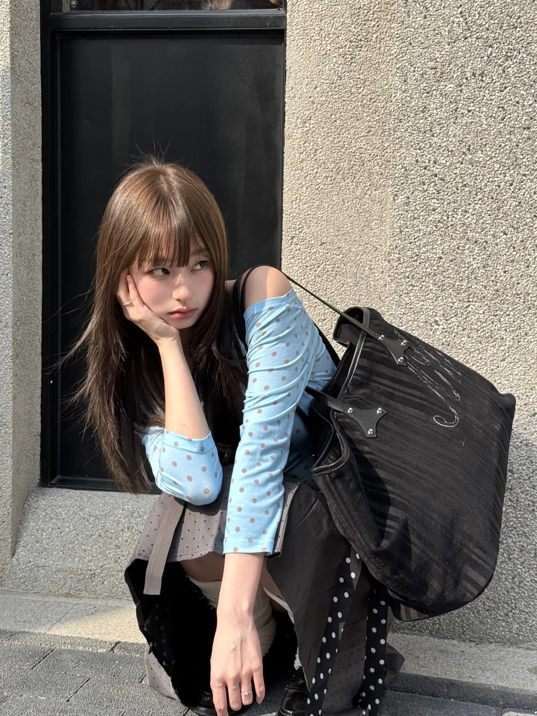 每到春夏都会重新爱上波点 今年好喜欢蓝灰的配色 没有那么可爱 清冷还带一点俏皮 有阳光的日子太美妙了 春天请你大胆的升温吧!