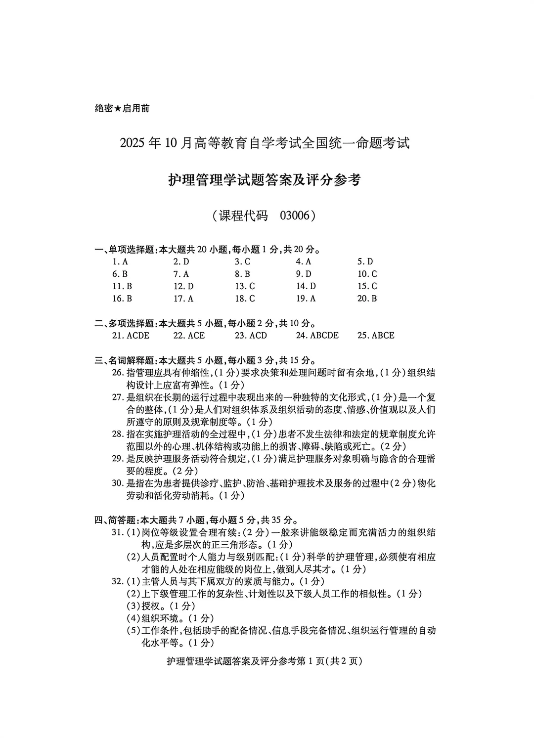 护理学 自考护理学本科 护理学自考本科 护理管理学 03006真题自考 护理管理学考试 护理管理学复习 03006自考 护理管理学教学 03006