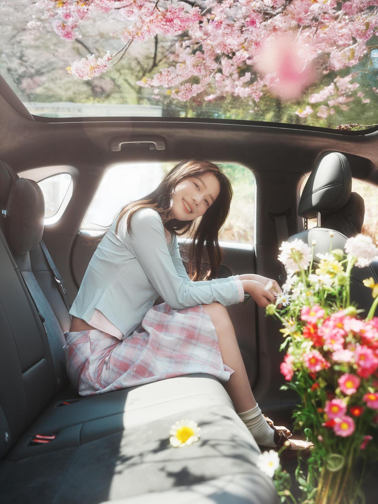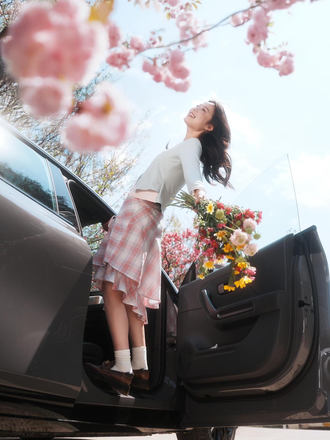 在人像创作时,当你把动态精准抓拍下来,那么人物发丝飘动、裙摆轻扬的瞬间,就能完美契合春日的灵动气质。这组的拍摄者巧妙利用车辆作为场景载体,不同机位的切换让画面层次丰富:低机位仰拍凸显人物与花枝、蓝天的融合感,平机位拍摄强化人物与车身的互动感,高机位俯拍则展现春日场景的整体氛围。 色彩搭配上,浅色系穿搭与粉色花枝形成清新色调,灰色车身作为冷色基底,中和了粉色的柔腻感,让画面既温柔又不缺乏质感。人物动作设计贴合春日主题,闻花、回眸、提裙摆等动作自然不刻意,传递出松弛自在的情绪,符合春日人像的情绪表达核心。 光影处理上,自然光的漫射效果让皮肤质感通透,同时保留了花瓣的纹理细节,没有出现过曝或死黑的问题。这组作品通过动态抓拍与场景融合,精准还原了春日的鲜活与美好,具备较高的参考价值。