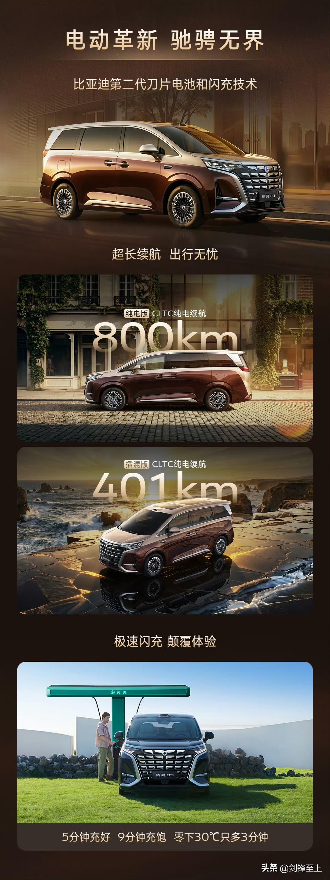 兄弟们,国外还在为了油价高涨,石油短缺闹心,我们这边不能说毫无动静吧,那至少也是波澜不惊。在新能源行业,比亚迪5分好,9分饱、3分寒的第二代刀片电池石破天惊,直接把新能源车技术推进了一大步,平替油车已经没有任何续航焦虑。 除了平价的宋ultra和海狮06,现在搭载二代刀片电池的豪华MPV腾势D9也迎来了预售,腾势D9长期霸榜中国高端MPV市场,绝对是有口皆碑的神作,也是新能源时代,中国商务用车的典范。 现在的第二代腾势D9不仅是强,而是强得离谱。外观采用展翼腾飞全新豪华前脸,一眼看过去绝对惊艳,内饰以百万级标准打造,触手可及都是精致设计,尤其是副驾的可开合智能屏,简直不要太贴心。中排采用升级零压云绒座椅,独创的丝柔悬浮层,坐上去那叫一个舒服。 在核心的性能指标上,天神之眼B和云辇就不多说了,懂的人都知道有多强,智驾和底盘这一块绝对拿捏。插混车型纯电续航达到惊人的 401公里,就问在MPV届还有谁? 纯电车型800公里,配合上二代闪充,无论是跨城商务亦或是全家出游,完全不虚,根本不存在续航焦虑。 中国车的高端成没成,看看MPV市场就知道了,腾势D9能牢牢掌控这个市场,靠的就是综合实力的碾压!