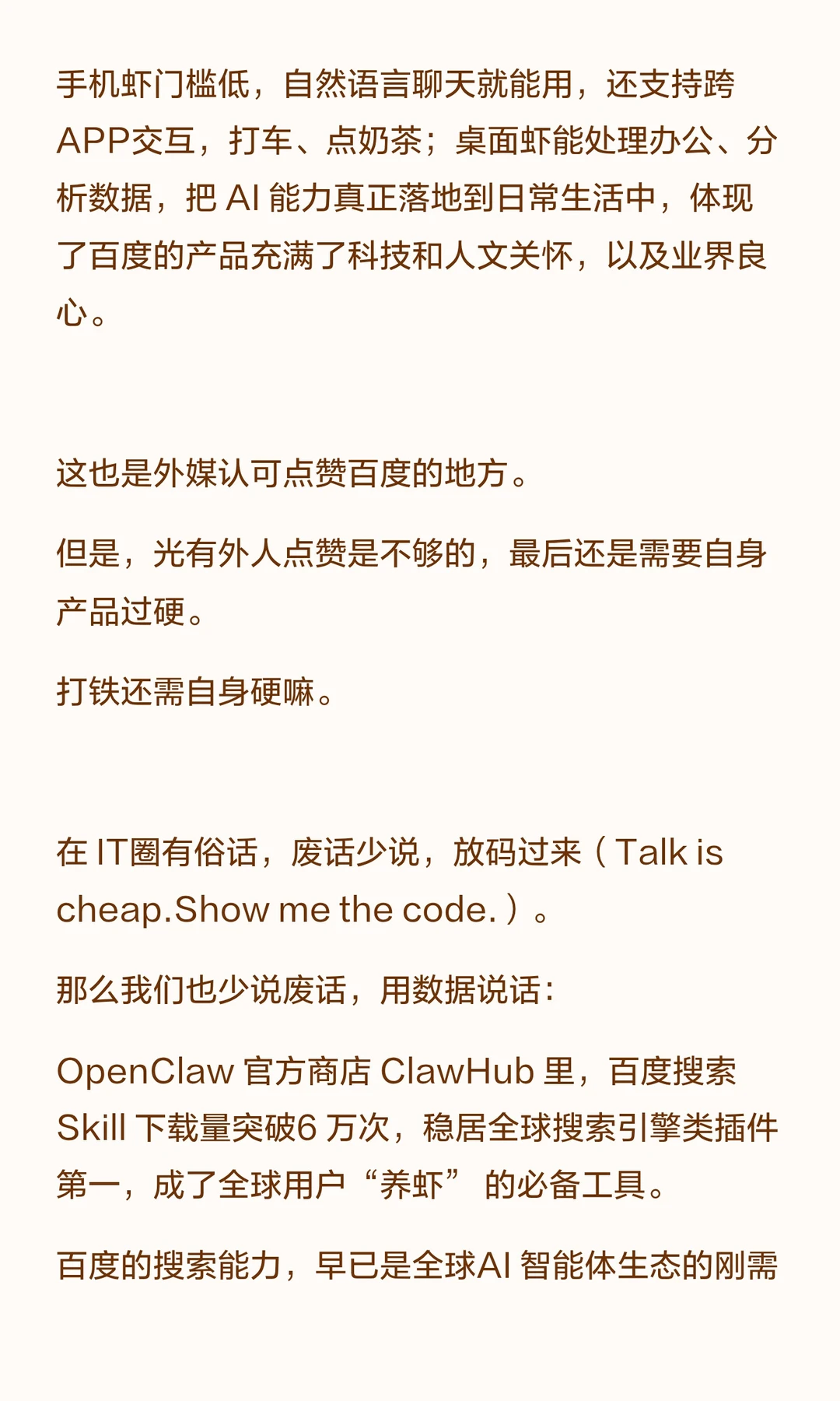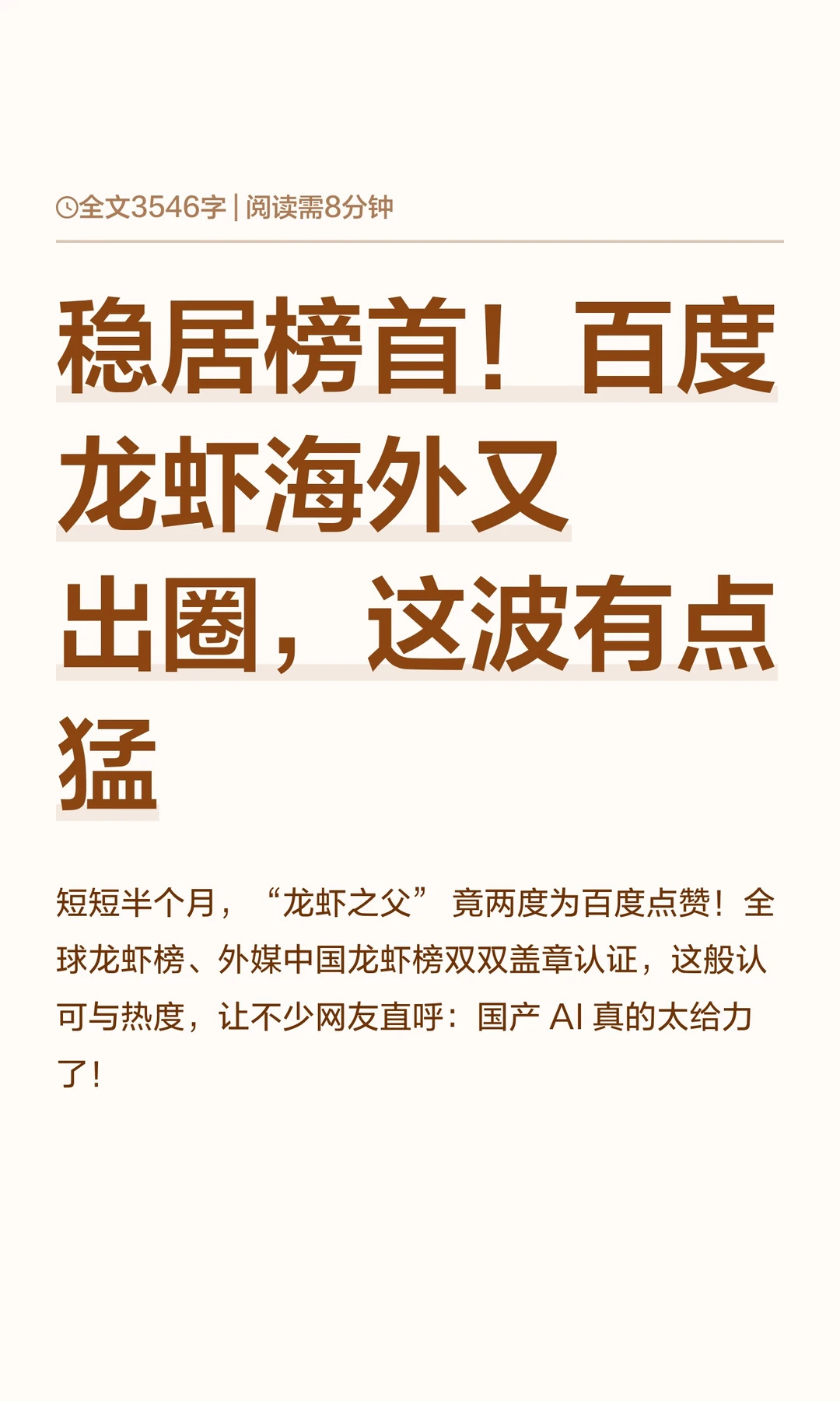 稳居榜首!百度龙虾海外又出圈,这波有点猛