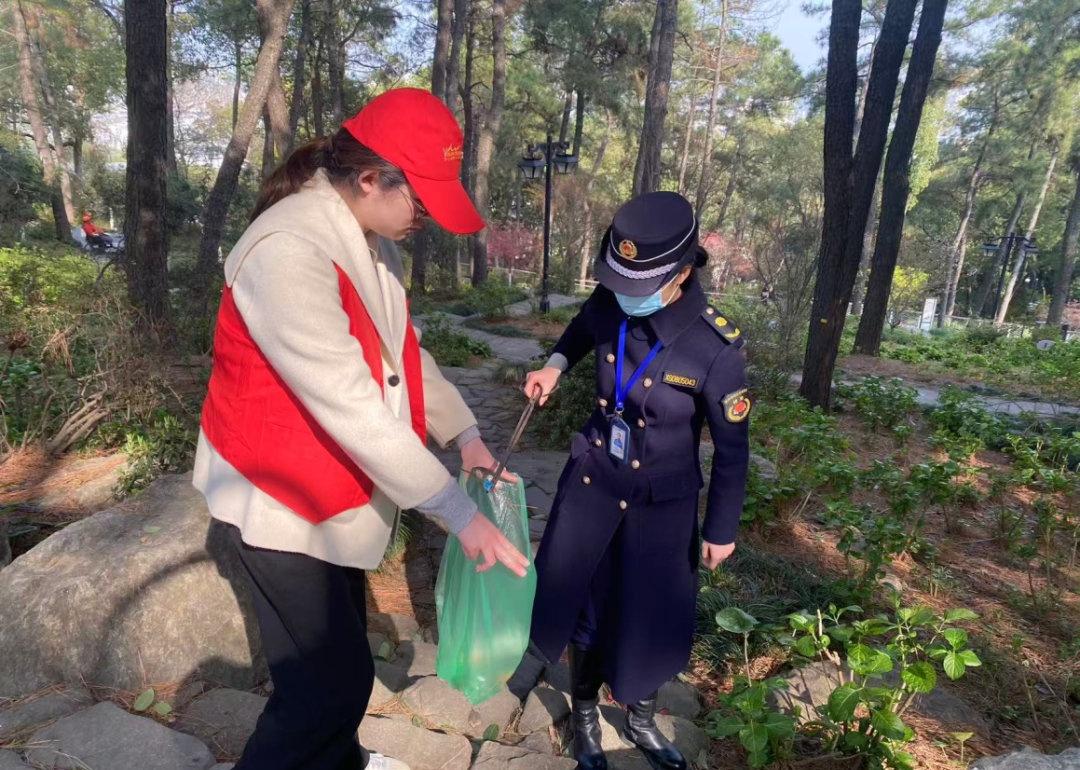 浙就很杭州【春风拂山岗,文明润心间】春日的临平山公园内,新绿缀满枝头,繁花点缀其间,草木葱茏,生机盎然。山色已然动人,但比繁花更美的,是人心的温度。临平区综合行政执法局蓝莺女子队队员们循着春光,在山间开展垃圾分类、文明养犬宣传活动。队员们俯身捡拾垃圾、清理草丛杂物,耐心劝导游客,让文明理念随春风一同传递。*X