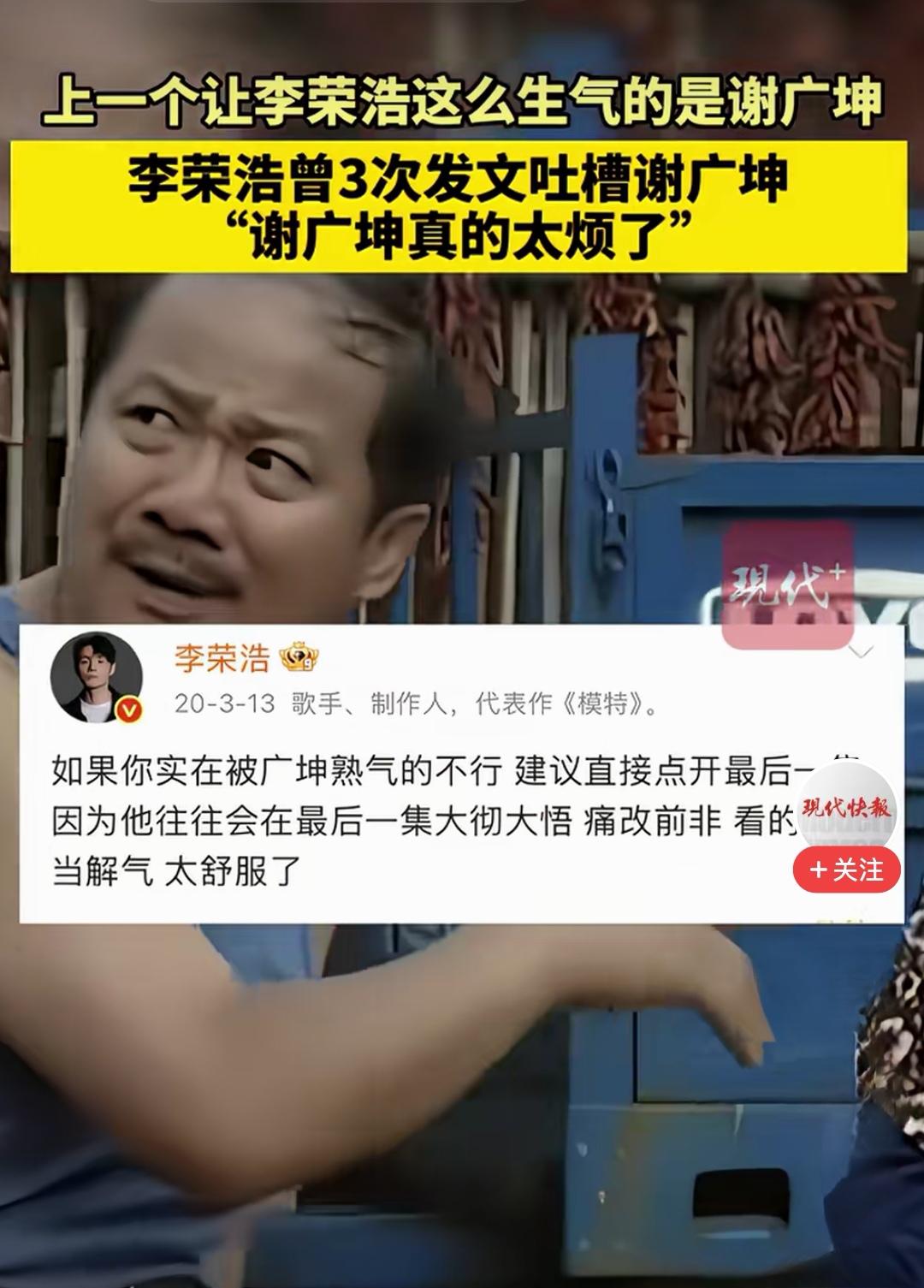 上一次让李荣浩连发三篇微博的是谢广坤! 他真的在认真看这部片!