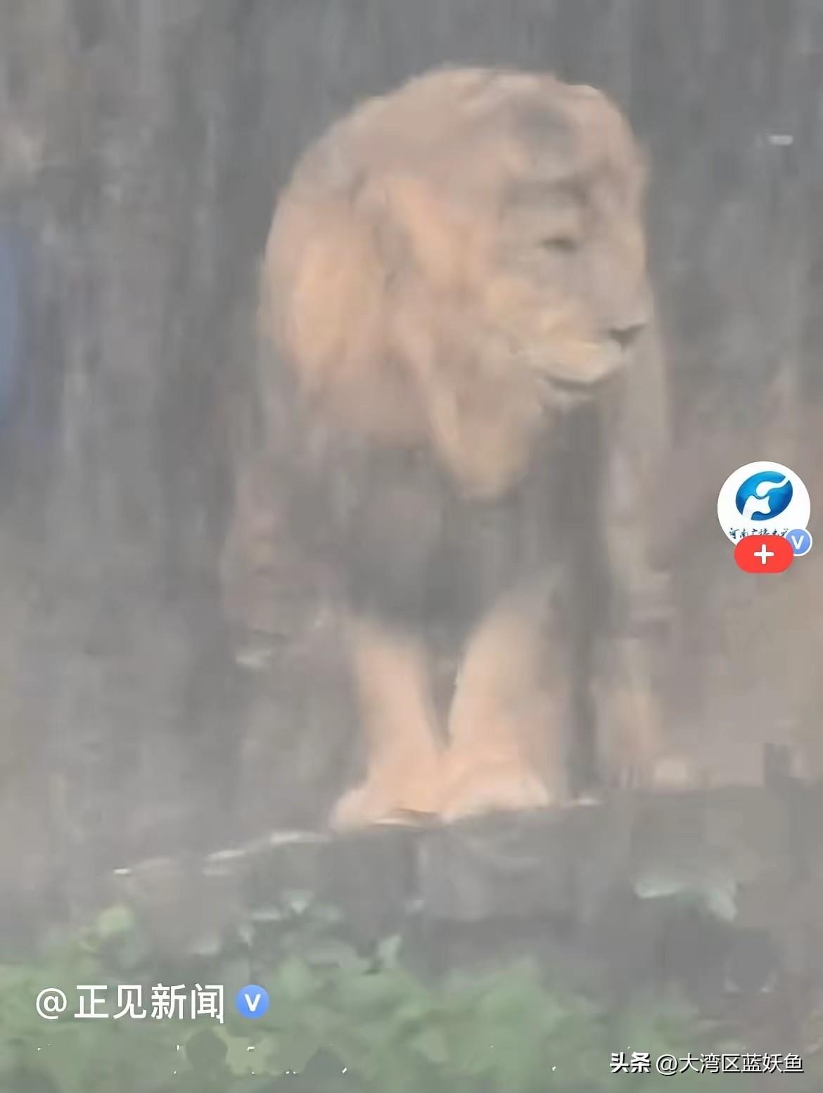 广州这场暴雨是真猛,长隆动物园里的动物全躲进棚子了,就那头雄狮,蹲在石头上硬扛,大雨浇得它鬃毛全贴脸上,跟剪坏的齐刘海似的,一动不动。 游客都看愣了,举着手机拍。平时这狮子多威风啊,鬃毛炸开像个王者,现在淋成落汤鸡,眼神耷拉着,一点精神头没有。有人说它在较劲,跟这破天气杠上了;也有人瞅着它那蔫样笑出声,说这哪是森林之王,分明是被雨浇懵的“落难王子”。 最逗的是它那刘海,平时蓬松得能藏只小鸟,现在湿哒哒贴在脑门上,把威风凛凛的脸衬得有点傻气。有阿姨念叨,这狮子怕不是跟对象吵架了?不然咋跟自己过不去,非要淋雨反省。 旁边饲养员说,这狮子就这脾气,犟得很,晴天晒太阳能蹲一下午,雨天就爱较劲,谁劝都不听。刚才拿肉干逗它,平时早扑过来了,现在眼皮都不抬一下,估计是雨下得太大,搅了它的午觉。 其实动物跟人挺像的,犟起来十头牛拉不回。你身边有没有这种人?认准的事八匹马拽不动,哪怕淋成落汤鸡,也要在雨里站成一道风景。 这狮子现在估计心里正犯拧:我就不挪,看这雨能下到啥时候。就是这齐刘海实在出戏,威风没了大半,只剩点憨劲了。 雨还在下,狮子还在蹲,不知道它要扛到啥时候。你们说,它是在等雨停,还是跟自己较劲呢?