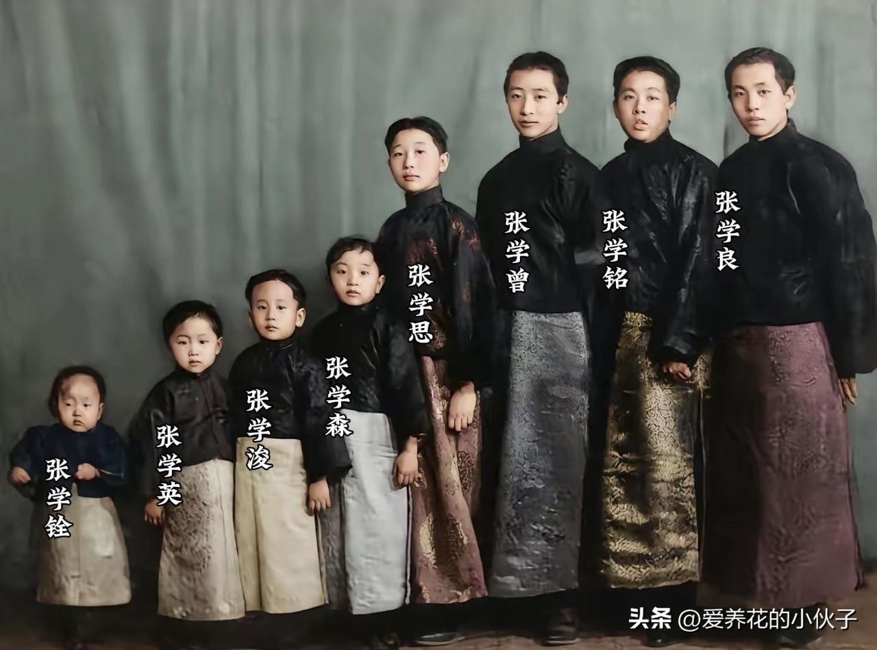 1927年,在沈阳大帅府,张作霖的八个儿子的一张珍贵合影! 张作霖一生有14个孩子,其中八个儿子,六个女儿,这张合影就是八个儿子的真实老照片,其中最出名的就是长子张学良,以及二子张学铭,以及四子张学思!其他的基本都很少有人知道?你认为他的几个儿子谁对中国近代史贡献最大?