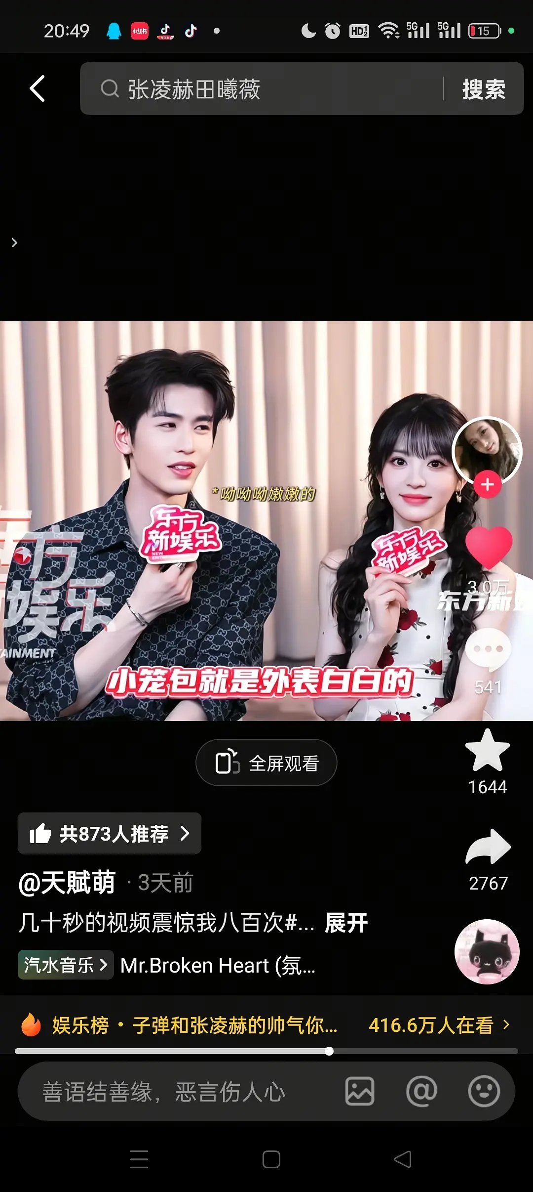 张凌赫和田曦薇这段互动很甜呀 大家觉得呢
