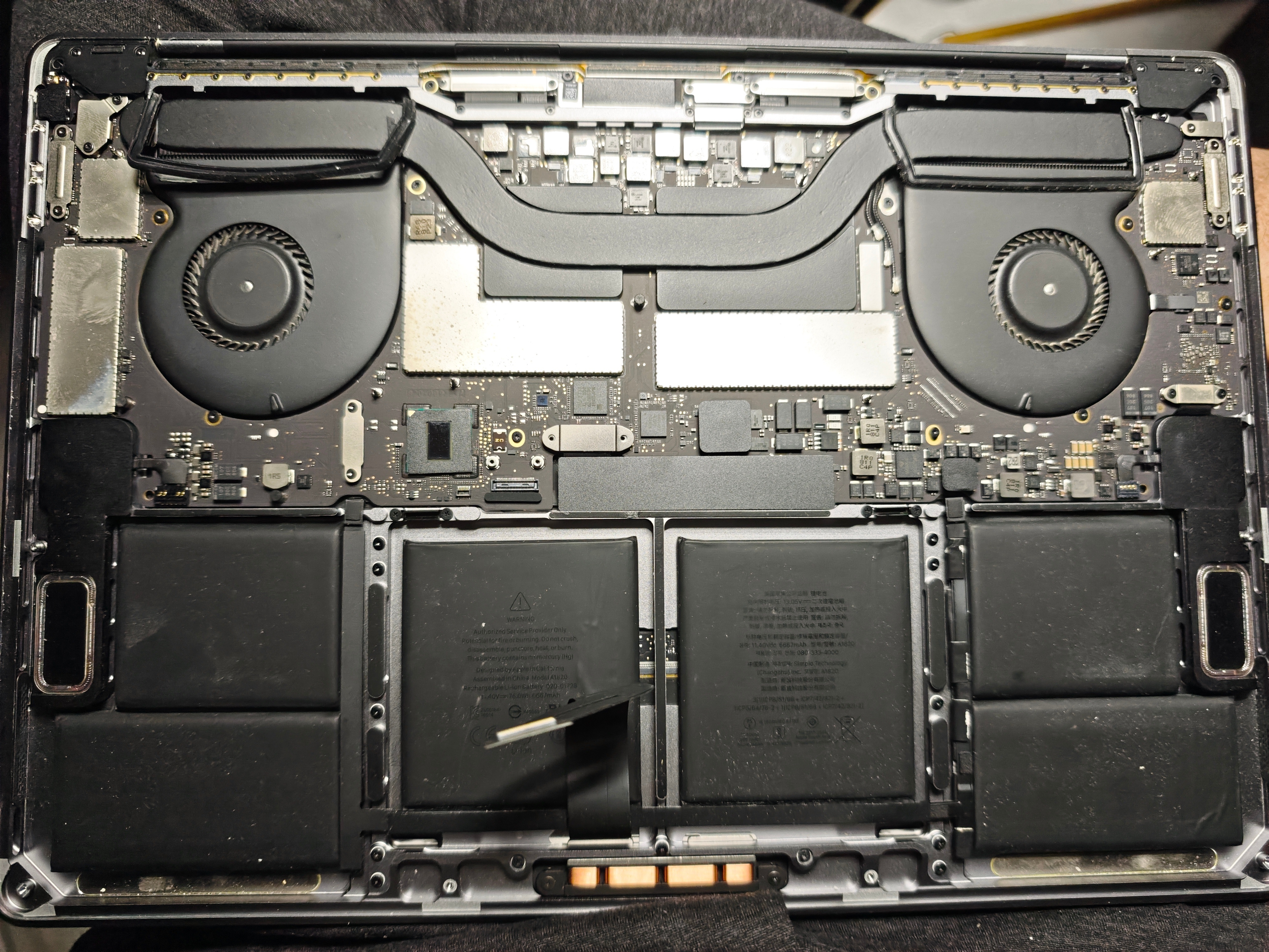 苹果的卡扣太多了,主板压着风扇电池。以为拆主板只需要几个螺丝。结果有茫茫多的卡扣,PCB压片等等。而且小螺丝巨小,国产手机都没那么小的螺丝,得用放大镜镊子装回去。我这个老花眼真是费劲