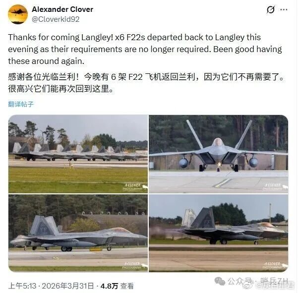 不过F-22看来是没机会了,都跑了,6架F-22已经返回兰利空军基地!