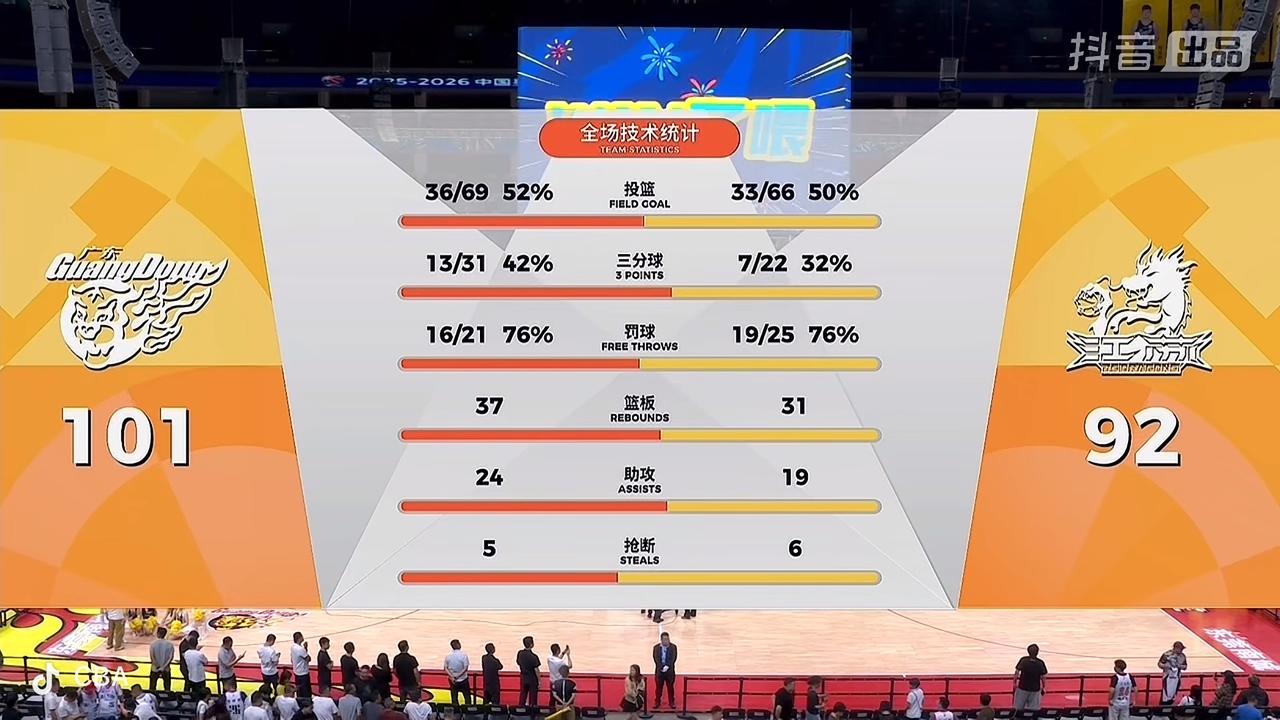 比赛结束了,主场作战的广东东阳光男篮不出意外的获得了胜利✌️! 在刚刚结束的广东队对阵江苏队的比赛中,最终广东队以101比92战胜了江苏队。 纵观全场比赛,广东队篮板优势明显,六名球员得分上双,萨姆纳表现非常出色,得到了24分。反观江苏队,虽然输了,但是打得真不错,只有三名球员得分上双,分别是得到30分的贾尔斯和庞峥麟和亨特。 恭喜广东东阳光男篮获得胜利✌️!