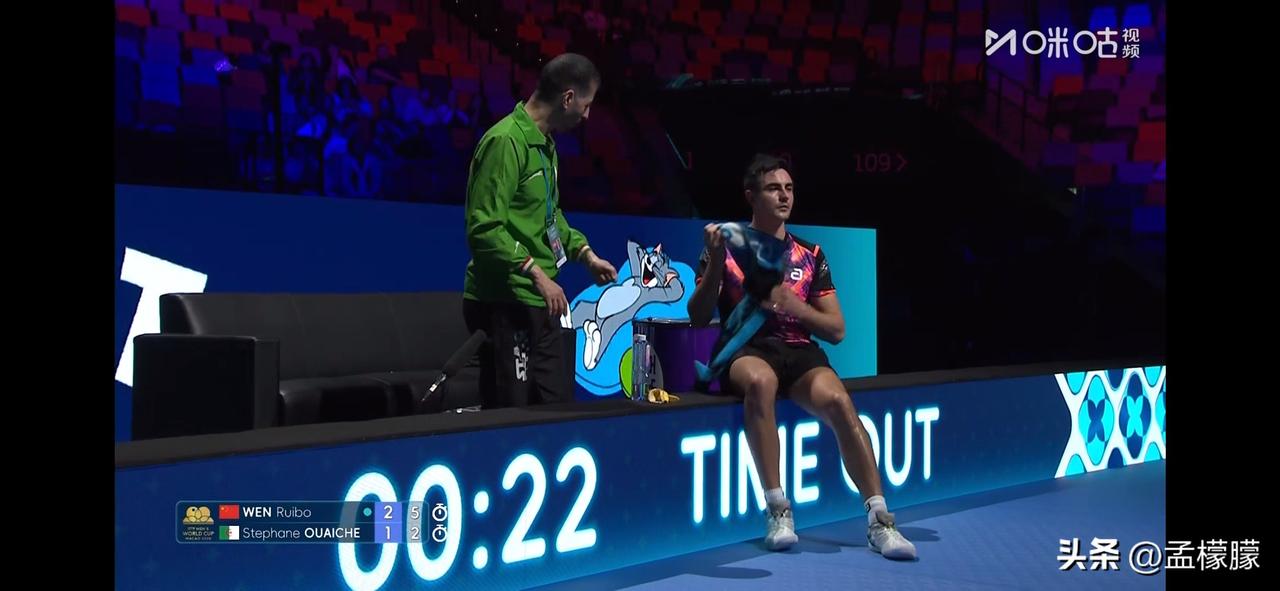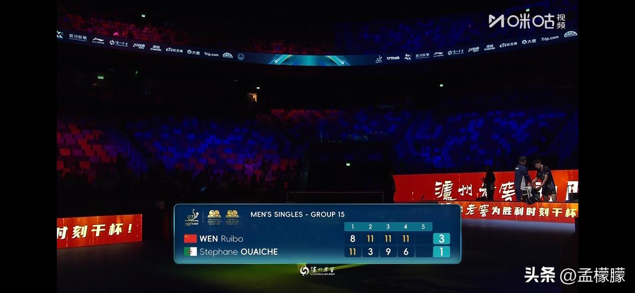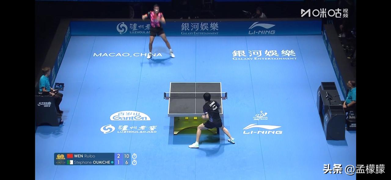 男单小组赛第二轮 温瑞博(CHN)3-1斯特凡·乌瓦切(ALG)【8-11,11-3,11-9,11-6】 下一轮比赛将对阵法国西蒙·高茨。高茨也是一位喜欢放高球的选手。 国乒小将温瑞博 国乒温瑞博 乒乓球 澳门世界杯