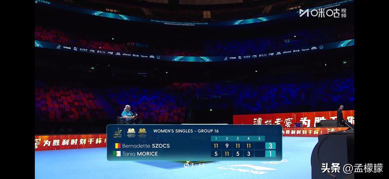 2026澳门国际乒联单打世界杯丨女单小组循环赛 伯纳黛特·斯佐科斯🇷🇴3-1塔妮亚·莫里茨🇩🇿【11-5,9-11,11-5,11-3】 下一轮,斯佐科斯将与巴西的高桥争夺一个出线名额。 普莉蒂卡·帕瓦德🇫🇷3-0吉雷特·梅利斯🇫🇷【11-2,11-2,11-6】 乒乓球
