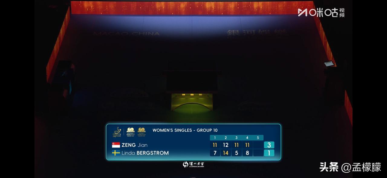 2026澳门国际乒联单打世界杯丨女单小组循环赛 曾尖🇸🇬3-1琳达·伯格斯特隆🇸🇪【11-7,12-14,11-5,11-8】 澳门世界杯