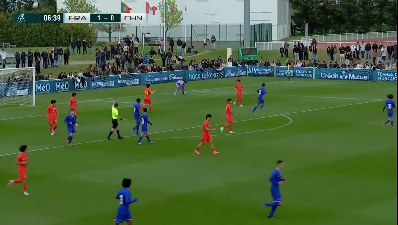 才5分钟就丢球啦!蒙太古杯中国U16首战0比1落后法国U16,比赛开始双方在中场拼抢比较激烈,中国队高位逼抢合围太猛,中场成了真空,法国队快速传递通过中场,法国队员带球突破轻松远射破门,防守的中国球员没上身体,让法国队员射门一点干扰也没有,中国U16丢球太早了,希望小球员们不要心急,时间还多的,慢慢来,中国队也创造了一次射门威胁,可惜先越位了,目前比赛进行到16分钟,法国队暂时领先,中国队加油,争取扳回来!